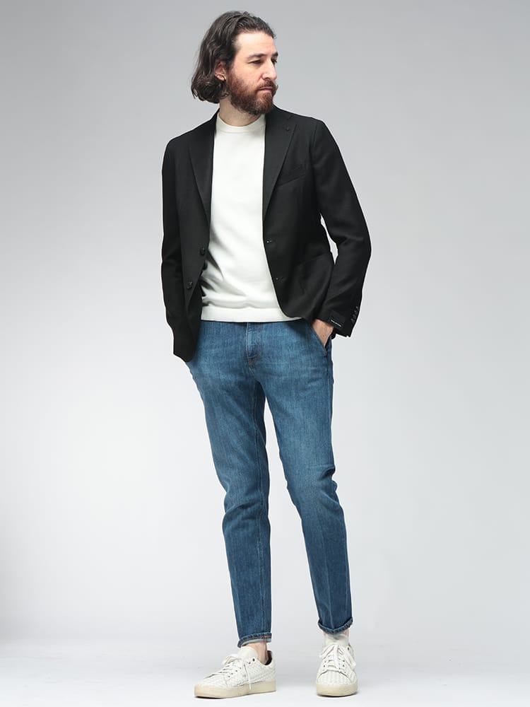 PT TORINOの独創性が光る「INDIE」モデルは、デニムの武骨さとスラックスの優雅さを完璧に融合させた、大人のためのハイブリッド・ボトムスです。美脚を約束するスリムフィットなテーパードシルエットに、軽快なクロップド丈を採用することで、足元に洗練された抜け感を演出。ストレッチの効いた上質なデニム生地が、細身ながらも驚くほどストレスフリーな穿き心地を実現しています。5ポケットの機能性はそのままに、ジップフライ仕様でデイリーな利便性も追求。カジュアルなTシャツスタイルから、ジャケットを合わせたドレスダウンまで幅広く対応し、都会的で知的なスタイルを構築します。デニムの常識を覆す端正な立ち姿が、装いを格上げする至高の一本です。