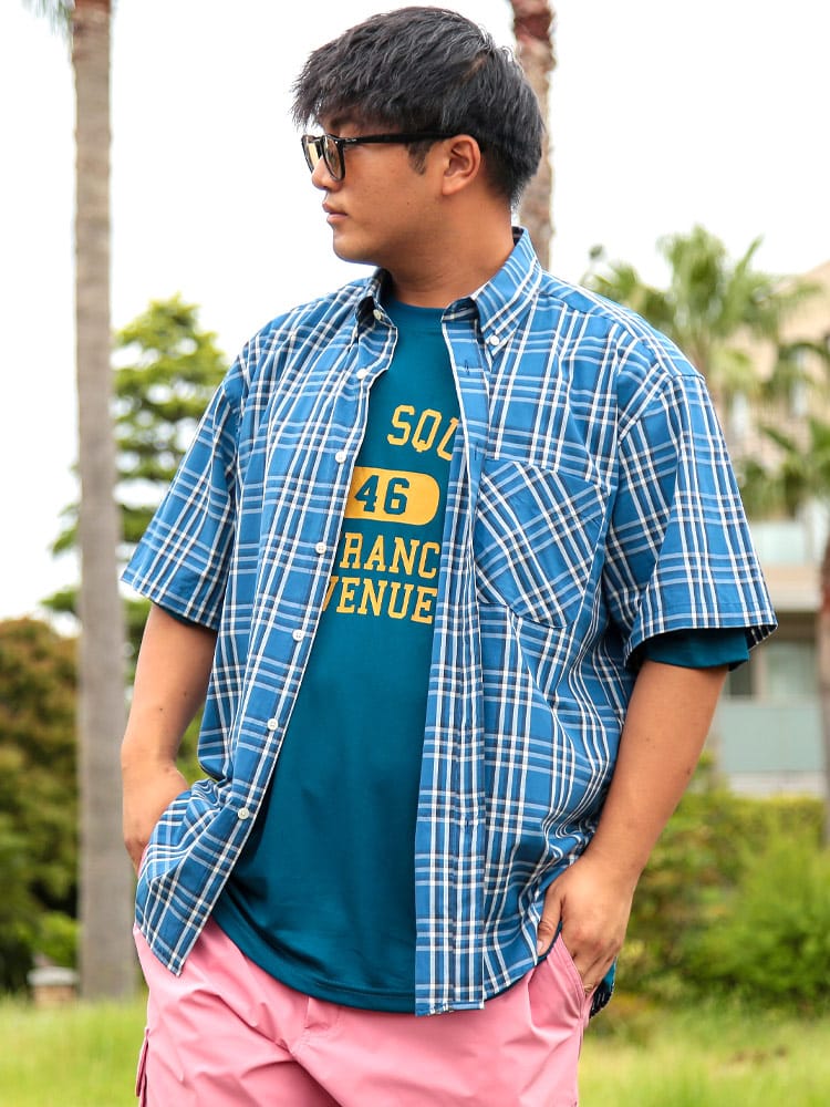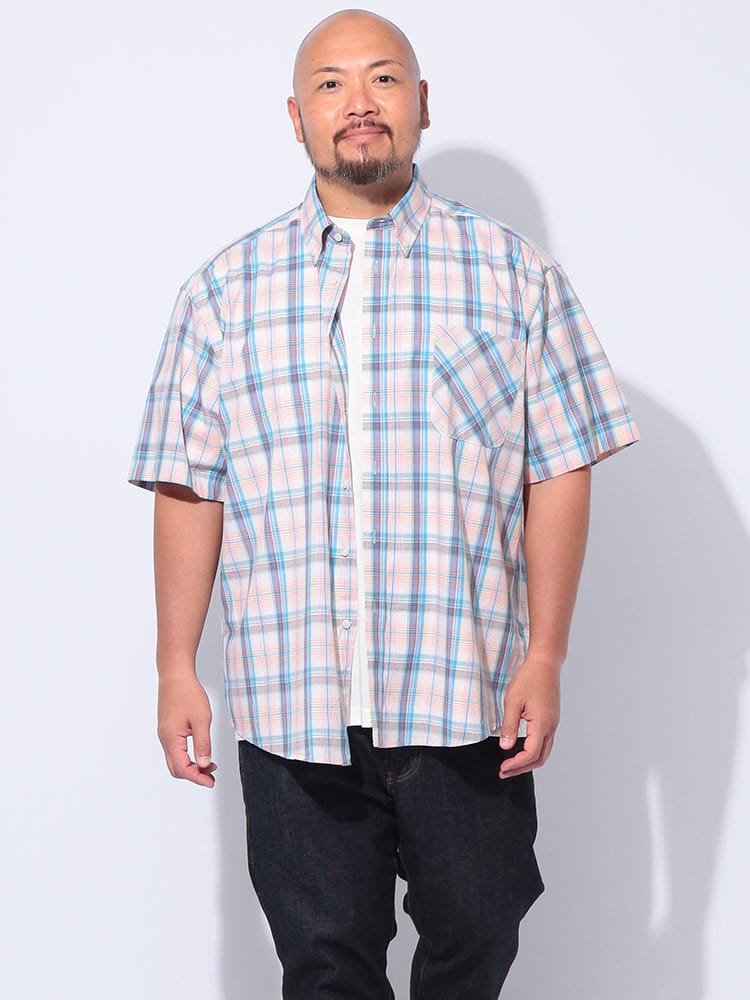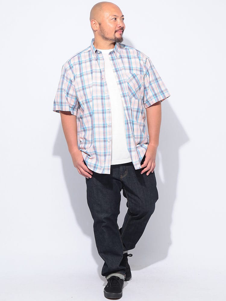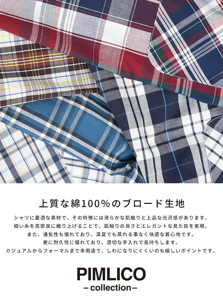 夏の主役は、涼やかさと洒落感を両立させたチェックシャツで決まり!大人の余裕を感じさせるブロードチェック ボタンダウン 半袖シャツが登場。上質な綿100%のブロード生地は、サラリとした肌触りで暑い季節も快適に過ごせるのが魅力。清潔感のあるボタンダウンと、主張しすぎない上品なチェック柄は、カジュアルながらもきちんと感を演出。いつものデニムに合わせるだけで、ワンランク上の夏スタイルが完成します。ゆったりとしたシルエットで、リラックスした着心地ながらも、だらしなく見えない絶妙なバランス。大きいサイズまで展開しているので、体型を気にせずおしゃれを楽しめるのも嬉しいポイント。シンプルなデザインなので、どんなボトムスとも相性抜群。一枚着はもちろん、Tシャツの上に羽織ったり、タックインしたりと、多彩な着こなしが可能です。この夏は、PIMLICOのチェックシャツで、涼やかさと洒落感を両立させた大人のサマースタイルを満喫してみてはいかがでしょうか。