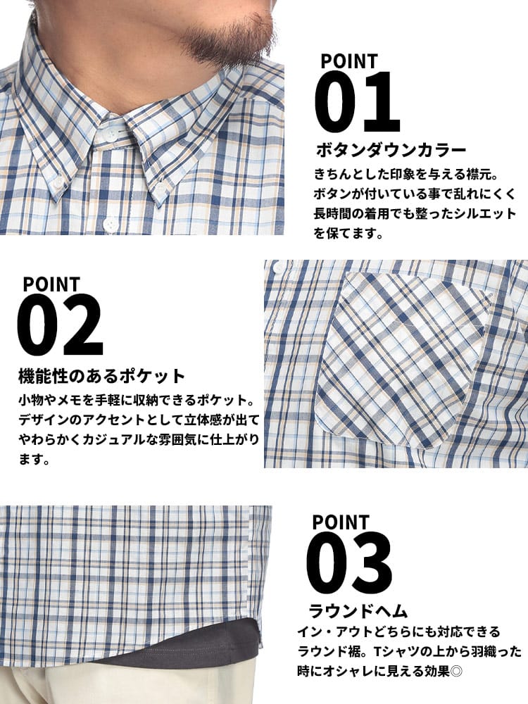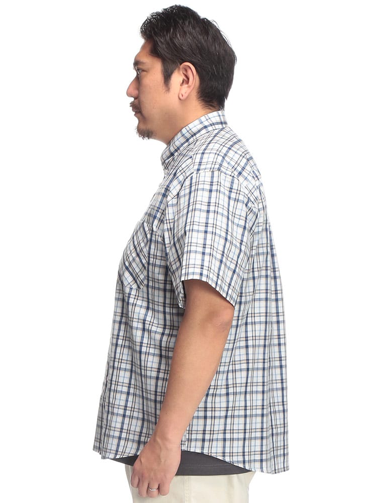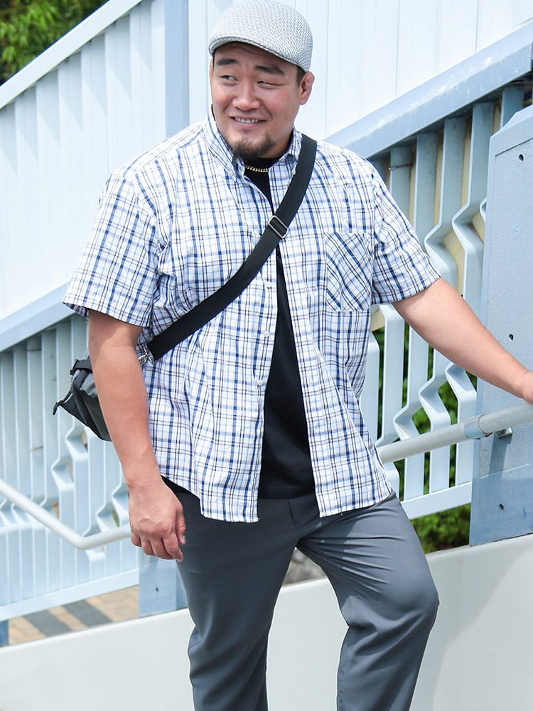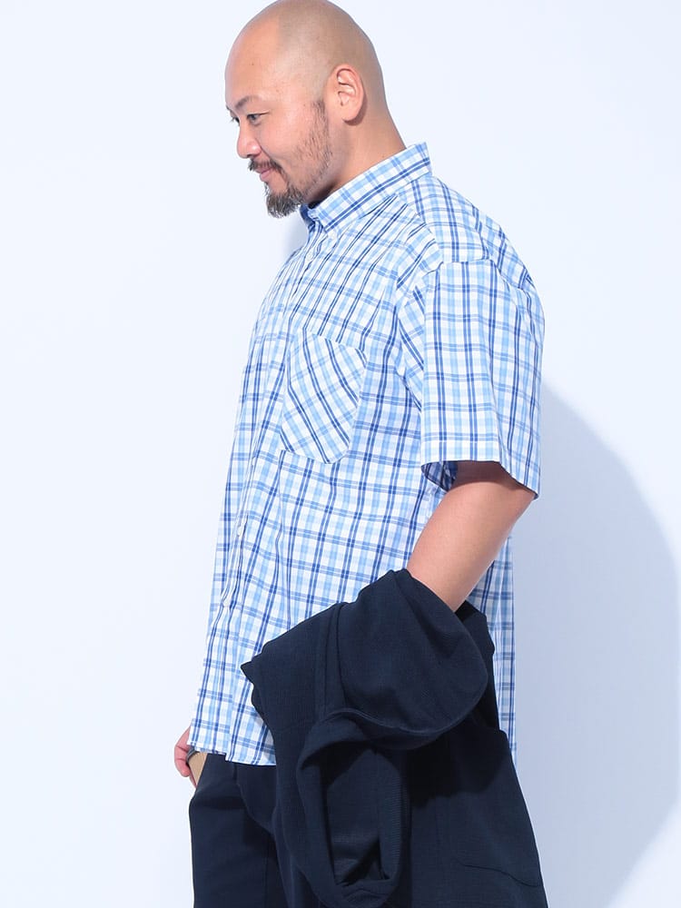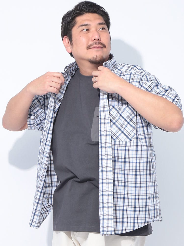 夏の主役は、涼やかさと洒落感を両立させたチェックシャツで決まり!大人の余裕を感じさせるブロードチェック ボタンダウン 半袖シャツが登場。上質な綿100%のブロード生地は、サラリとした肌触りで暑い季節も快適に過ごせるのが魅力。清潔感のあるボタンダウンと、主張しすぎない上品なチェック柄は、カジュアルながらもきちんと感を演出。いつものデニムに合わせるだけで、ワンランク上の夏スタイルが完成します。ゆったりとしたシルエットで、リラックスした着心地ながらも、だらしなく見えない絶妙なバランス。大きいサイズまで展開しているので、体型を気にせずおしゃれを楽しめるのも嬉しいポイント。シンプルなデザインなので、どんなボトムスとも相性抜群。一枚着はもちろん、Tシャツの上に羽織ったり、タックインしたりと、多彩な着こなしが可能です。この夏は、PIMLICOのチェックシャツで、涼やかさと洒落感を両立させた大人のサマースタイルを満喫してみてはいかがでしょうか。