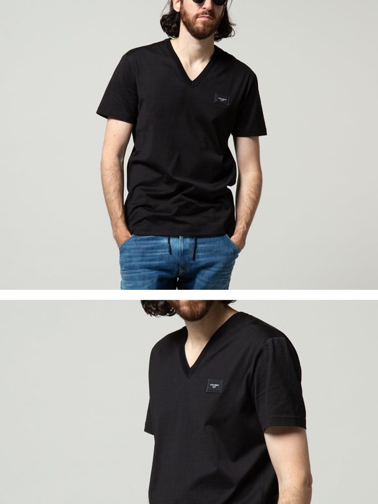 DOLCE&GABBANA (ドルチェ&ガッバーナ) ロゴプレート Vネック 半袖 Tシャツ DGG8KK0TFU7EQ ブランド