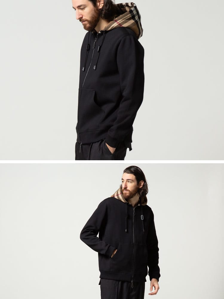 BURBERRY (バーバリー) 裏起毛 チェックフード フルジップ 長袖 パーカー BB8048026 ブランド メンズ スウェット