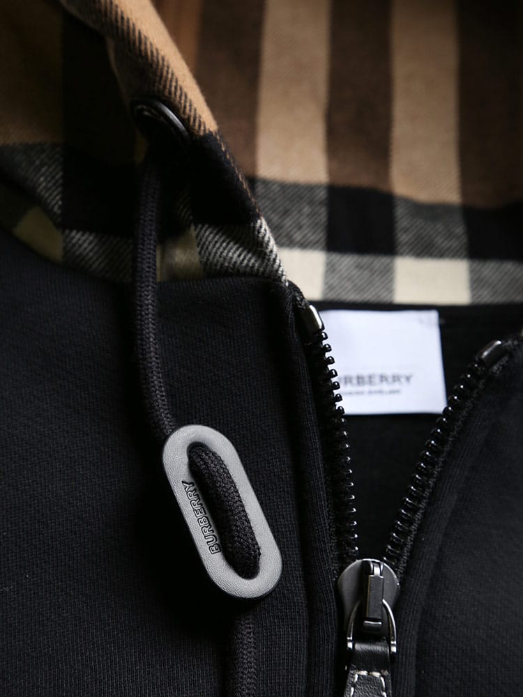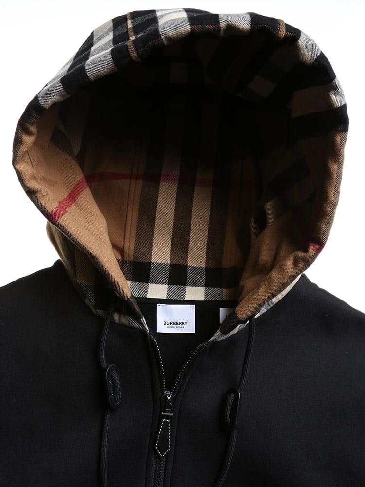 BURBERRY (バーバリー) 裏起毛 チェックフード フルジップ 長袖 パーカー BB8048026