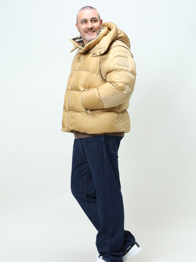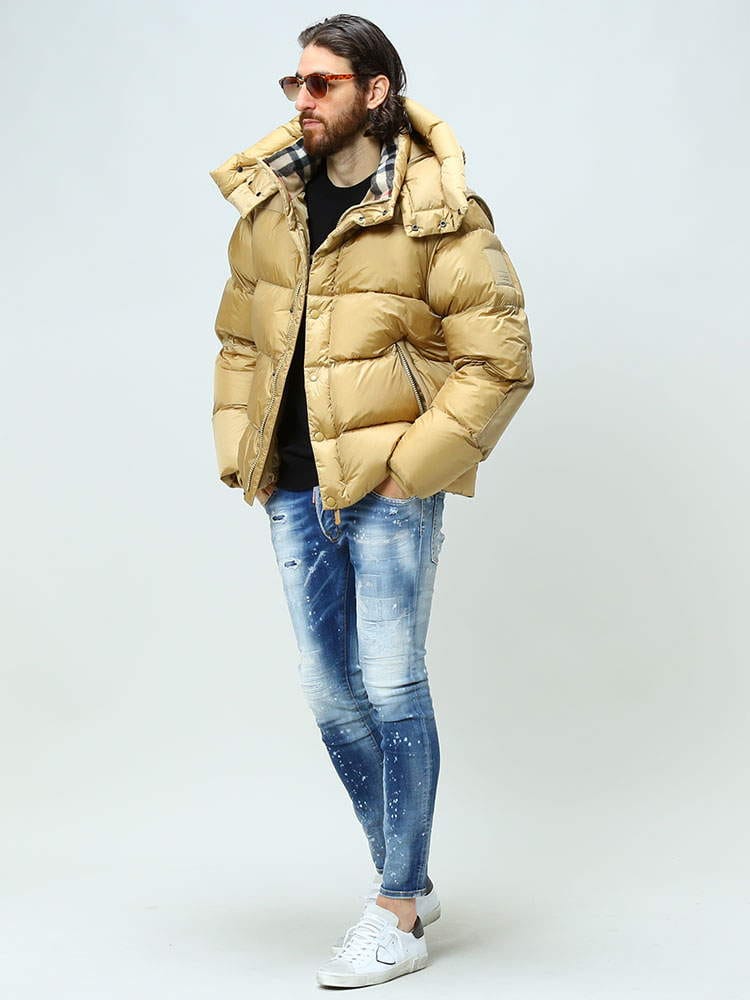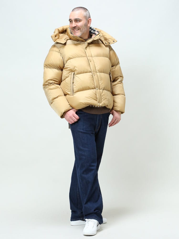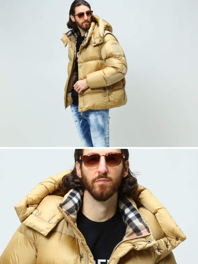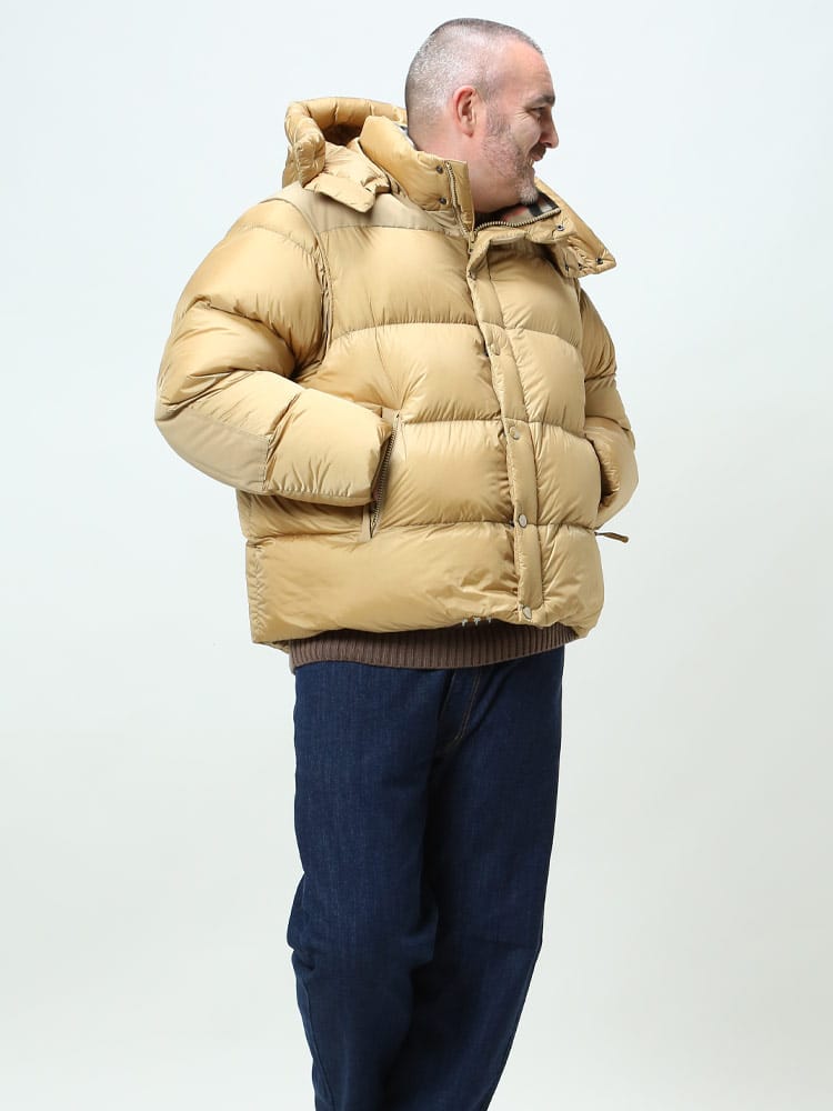 素材 :[本体]ナイロン100% [別布]ポリエステル87% 綿13% [裏地]ポリエステル100% [衿裏]ウール50% カシミヤ50% [袖口]綿86% ナイロン13% エラスタン1% [中綿]グースダウン80% ポリエステル20% [詰め綿]ポリエステル100%