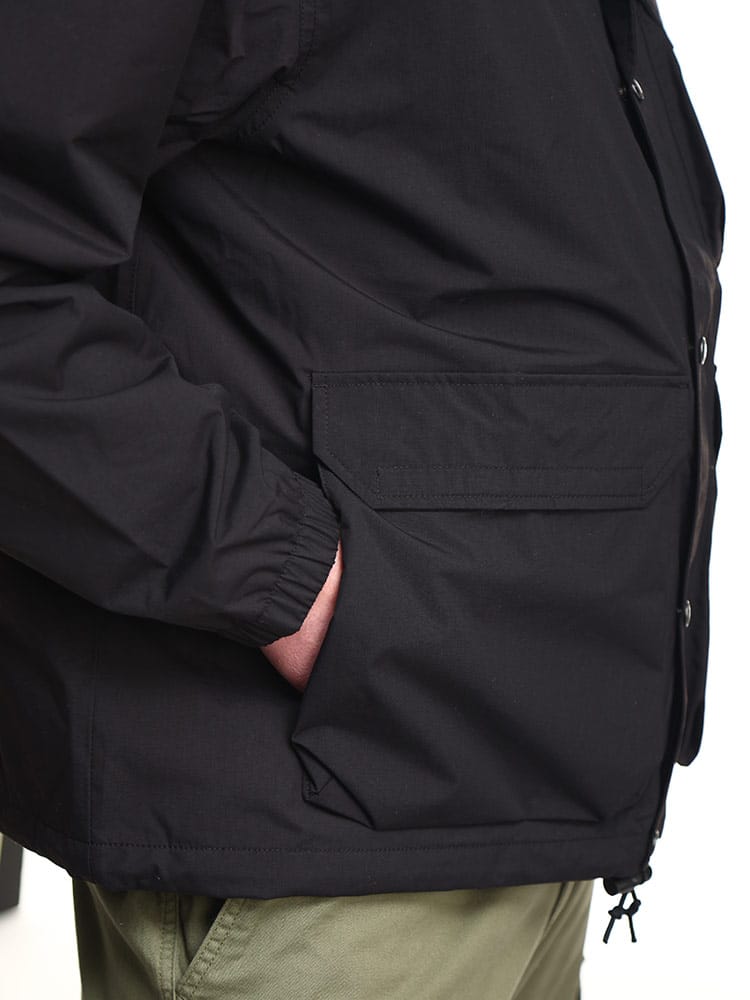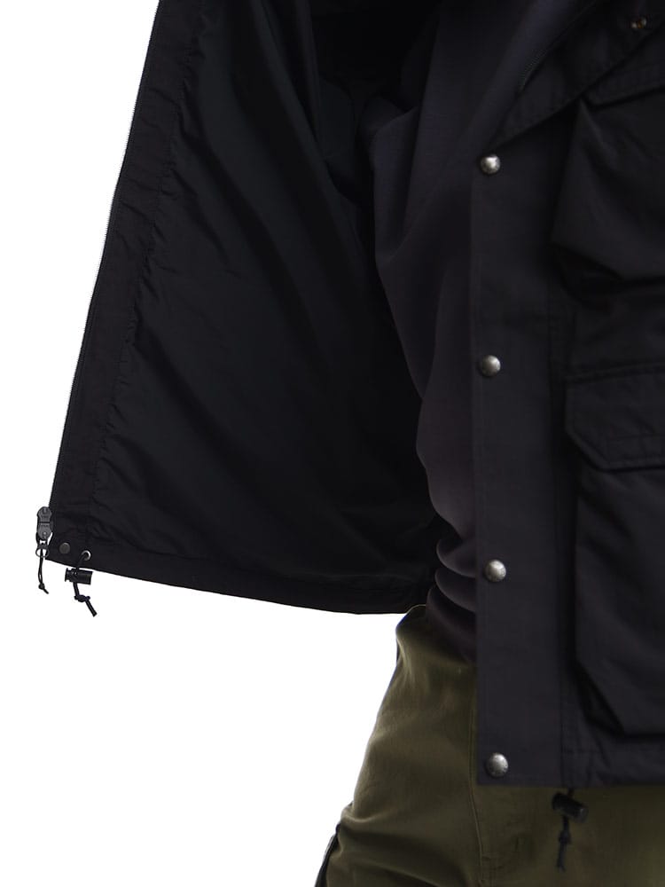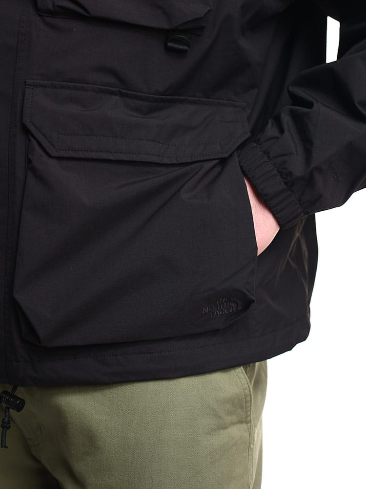 THE NORTH FACEのナイロン フード フルジップ ジャケットです。薄手ながらしっかりとした生地感のフ付きジャケット。フロントに配された大きな3つのポケットが収納性の高いデザインに。フロントジップの上にボタン閉じ仕様、裾のドローコードや袖口のボタン調節で冷たい風の侵入も防いでくれる高機能ジャケットです。