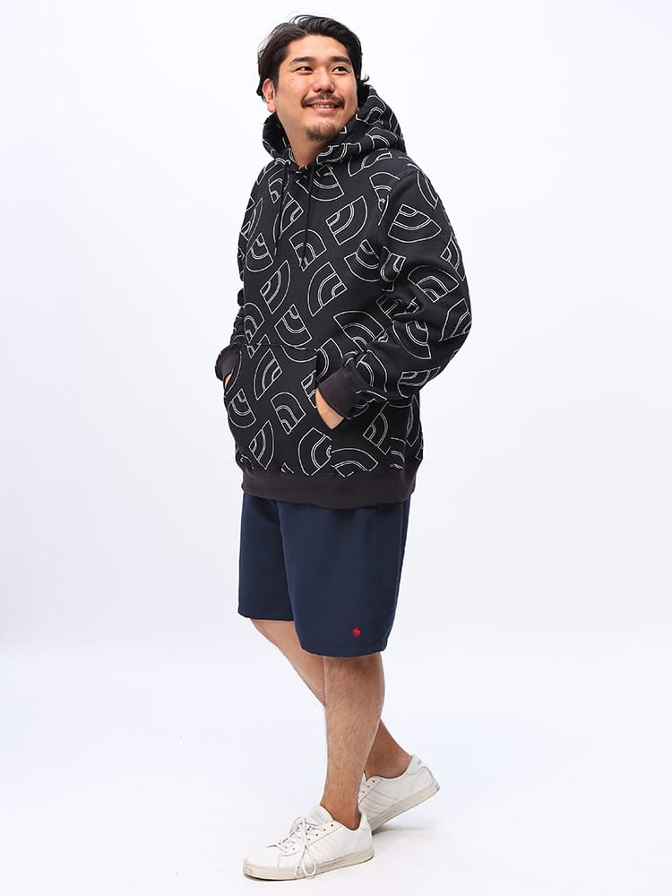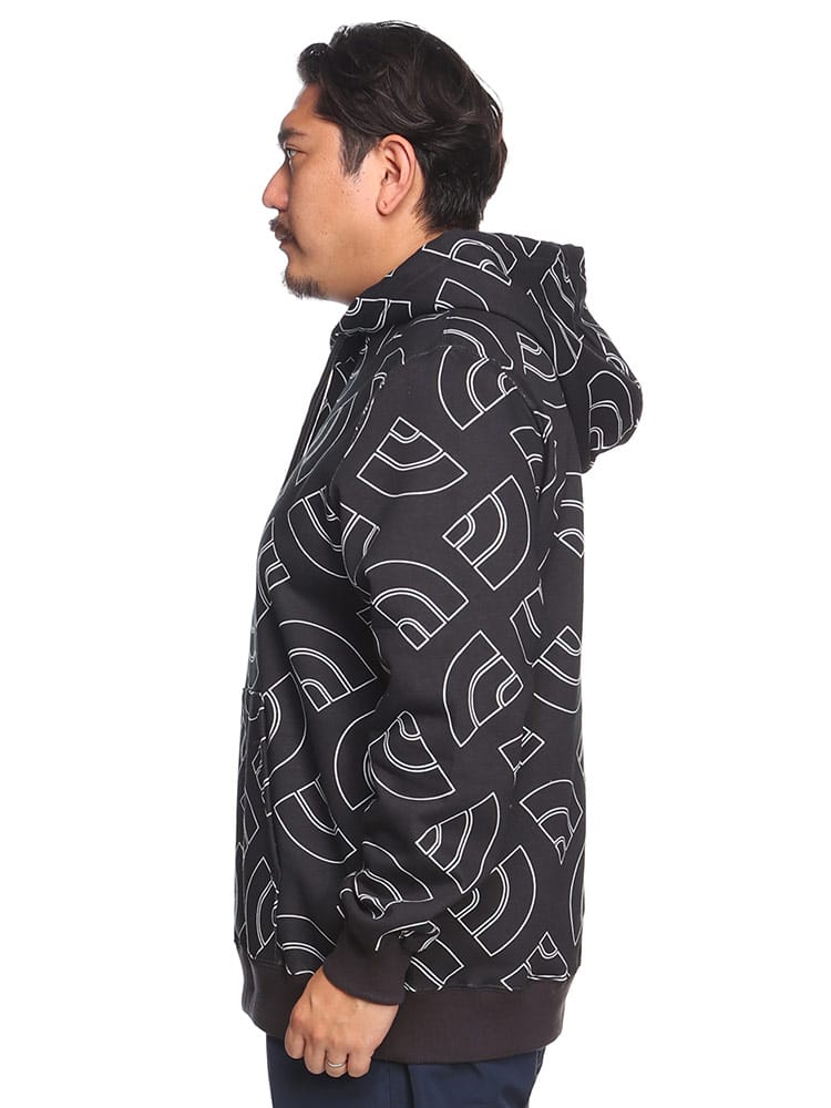 このフーディは、全体に施されたユニークなプリントデザインが特徴で、目を引くスタイルを提供します。快適で暖かい素材を使用し、リラックスフィットで設計されており、日常使いはもちろんのこと、アウトドアやカジュアルなアクティビティにも適しています。