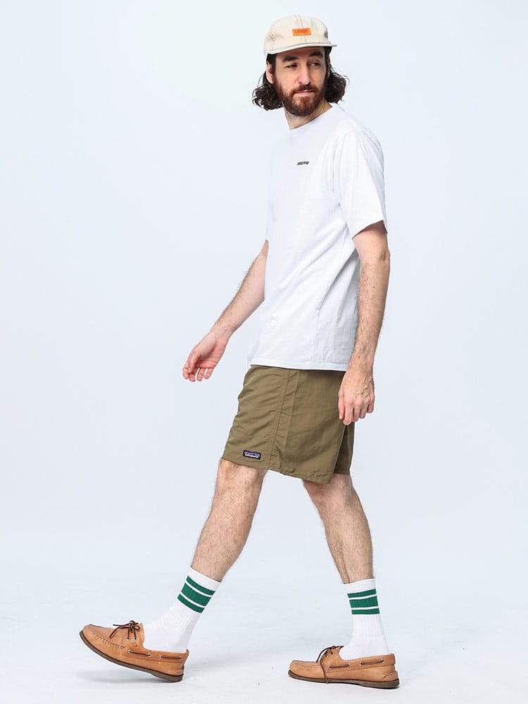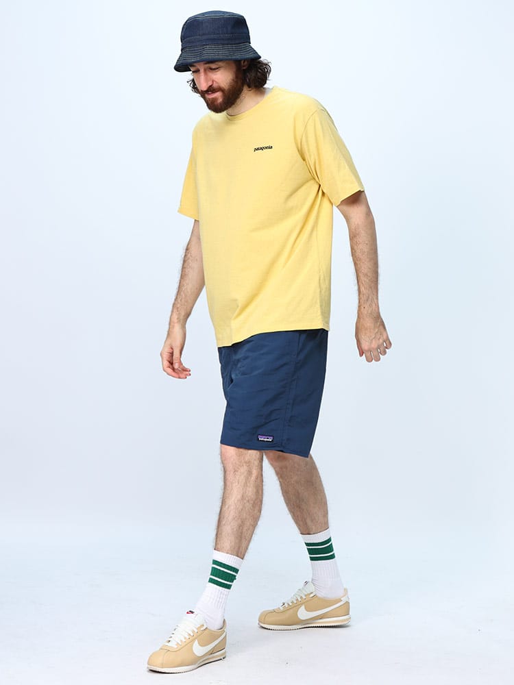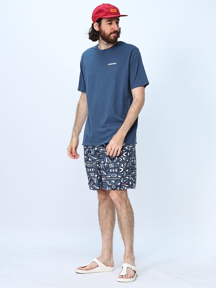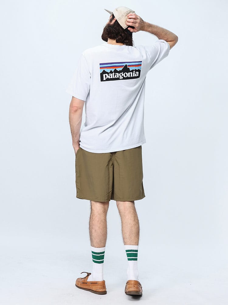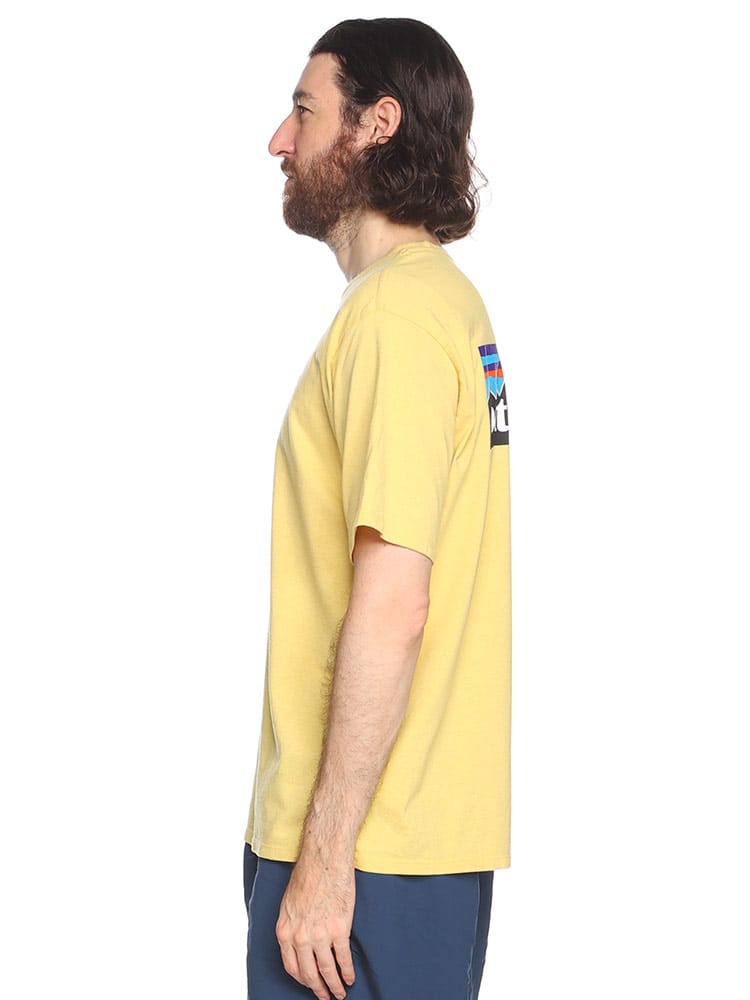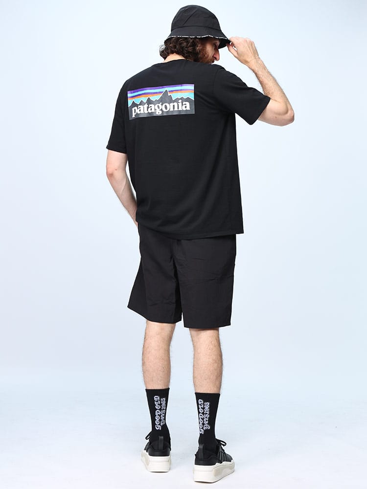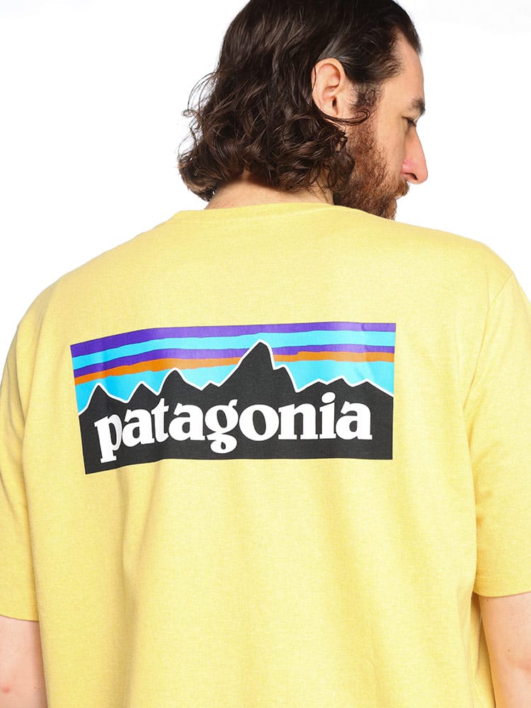 リサイクル素材を使用し、定番のグラフィックをあしらったパタゴニア製品の中で最もカーボンフットプリントを抑えたTシャツ。端切れと回収されたペットボトルを利用し、バージン素材への依存を削減。