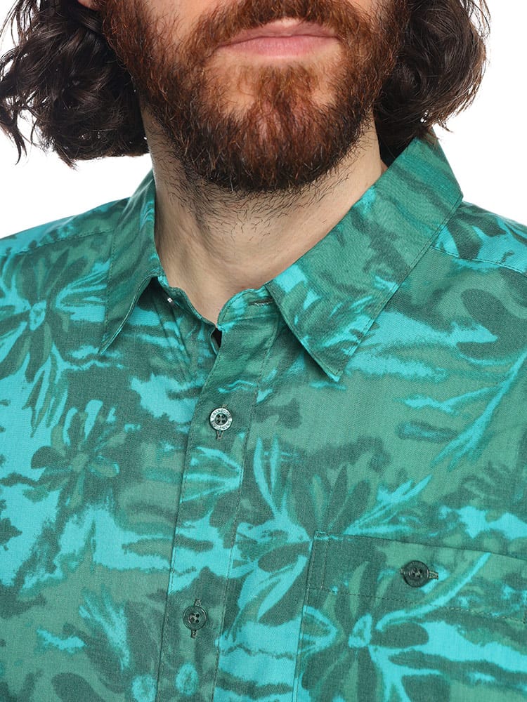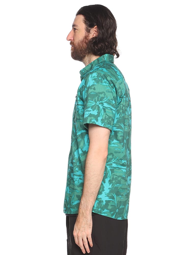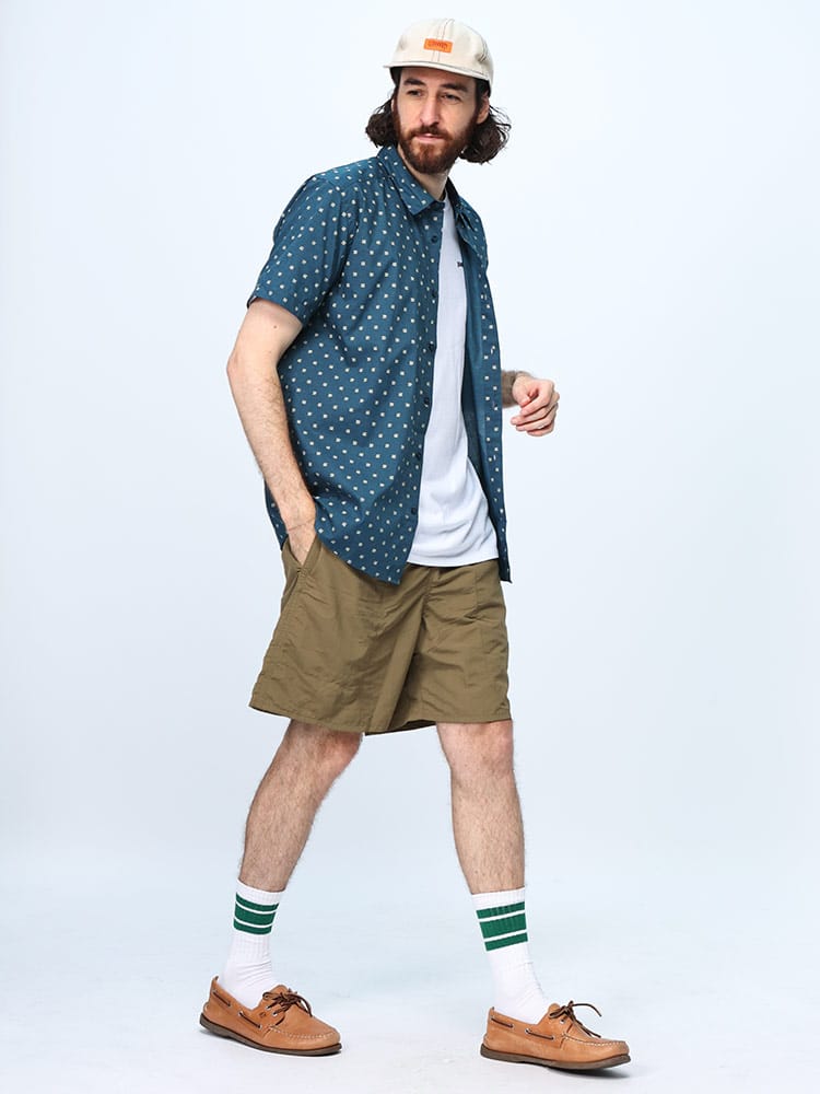 軽量なオーガニックコットン/リサイクル・ポリエステル混紡素材を使用した、手入れが容易でこのうえなく快適な半袖シャツ。