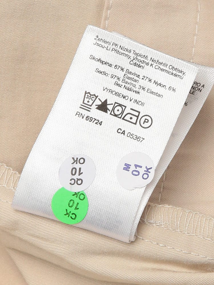 商品についている下げ札(タグ)に身長や胸囲などのサイズが記載されたものがございますが、そちらは「対応ヌードサイズ表記」となります。当店の商品ページに記載しております商品そのものを採寸した【実寸サイズ表記(仕上がり寸法】とは異なる表記となりますので、ご注意ください。
