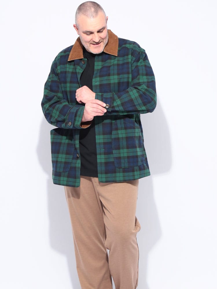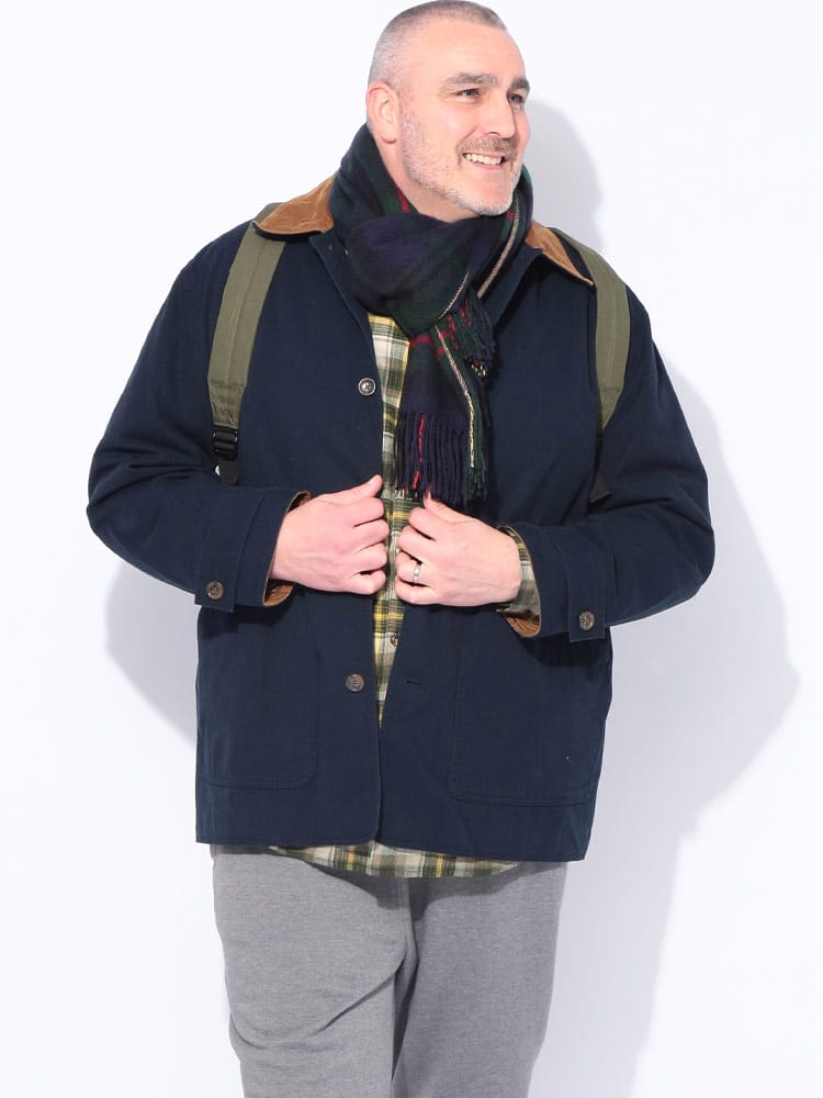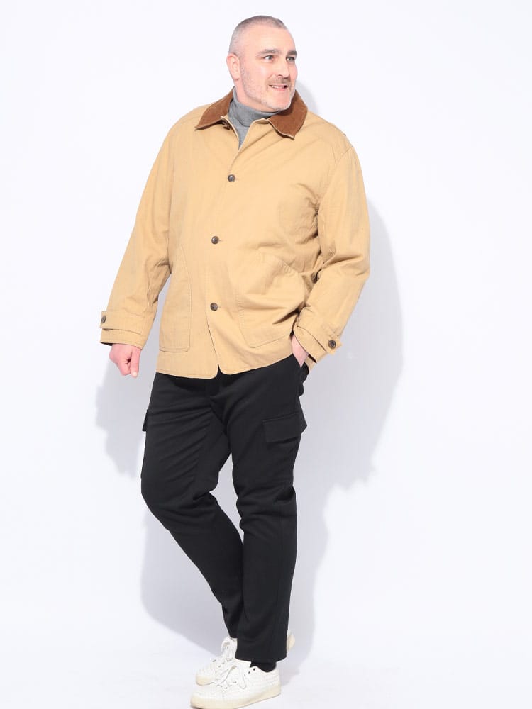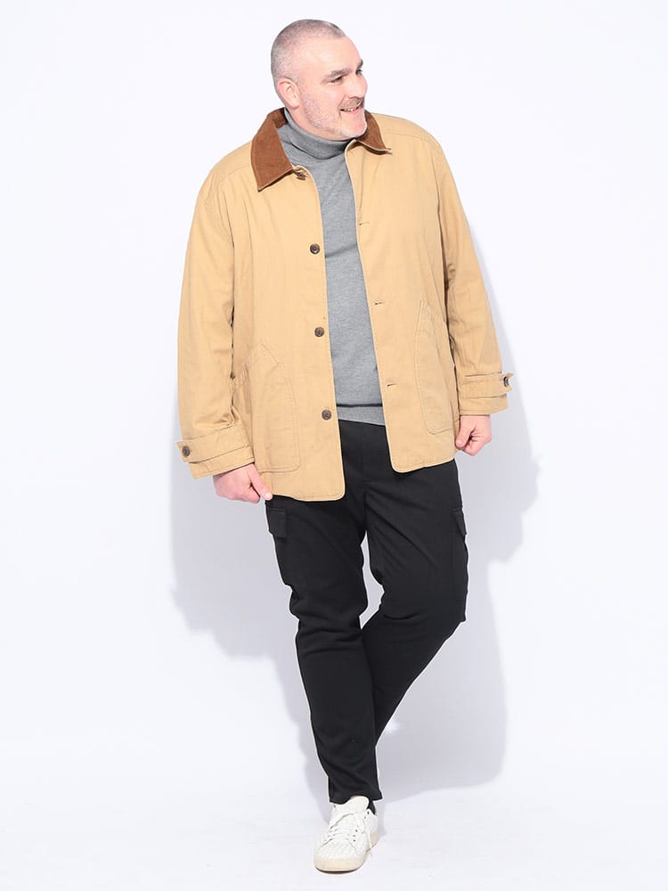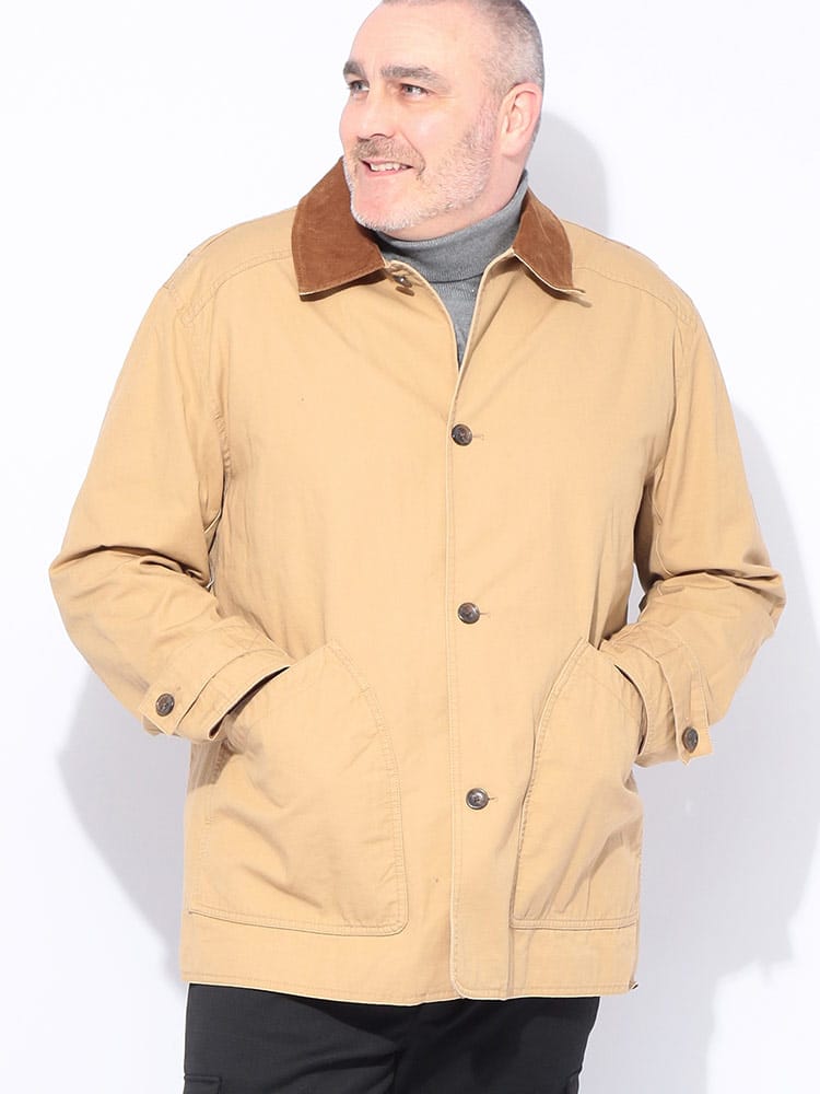 トミーヒルフィガーらしい、クラシックで都会的な雰囲気を纏ったハーフコート。襟元と袖裏に配されたコーデュロイ素材が、季節感と上品なアクセントを演出します。本体には風合い豊かなコットン100%を使用し、裏地も綿素材で快適な着心地を実現。フルジップ&ボタンの比翼仕立てで、すっきりとした見た目と機能性を両立しました。袖を捲れば異素材感が楽しめるディテールも魅力。大きいサイズならではのゆとりあるシルエットが、大人のプレッピースタイルを格上げする一着です。