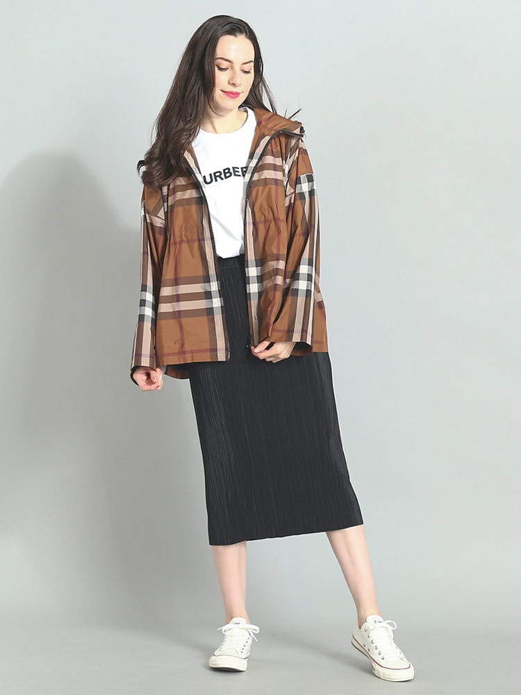 2023年春夏新作のバーバリーレディースジップパーカーです。バーバリーらしいチェック生地はリサイクル素材70%使用しており、サスティナブルな一着。しっかりとした厚手ですが、軽いので持ち運びも邪魔にならないですよ。Aラインシルエットですが、ウエストはドローコードで調節可能なのでキュッと絞ってウエストマークしても雰囲気が変わって楽しめます。サイズ感はリラックスフィットの大きめサイズになります。(スタッフS)