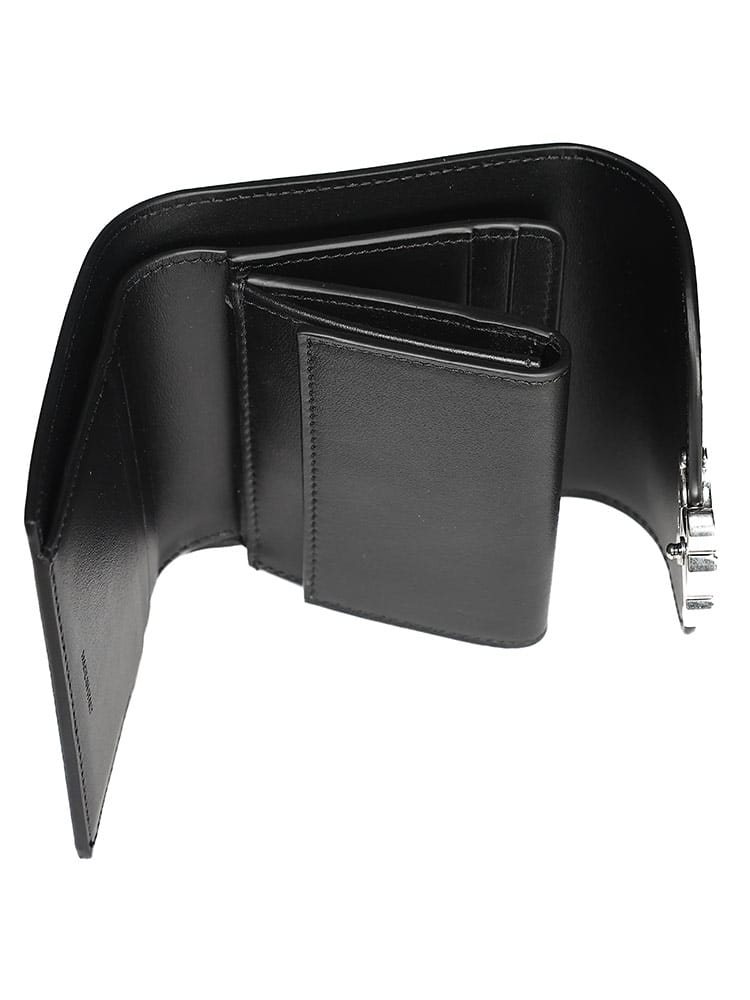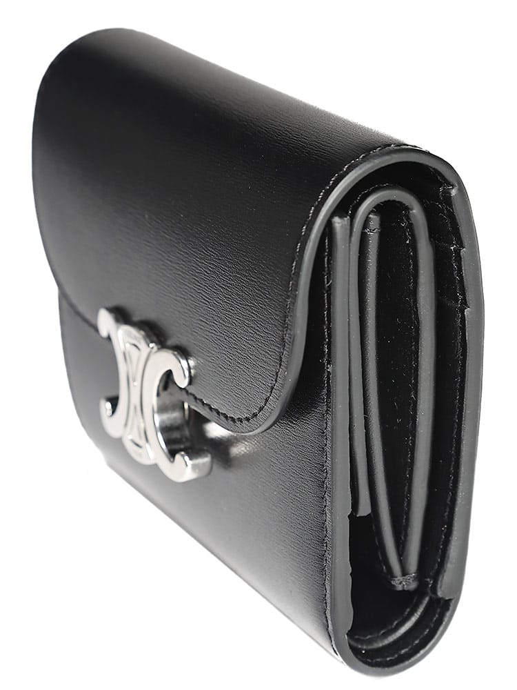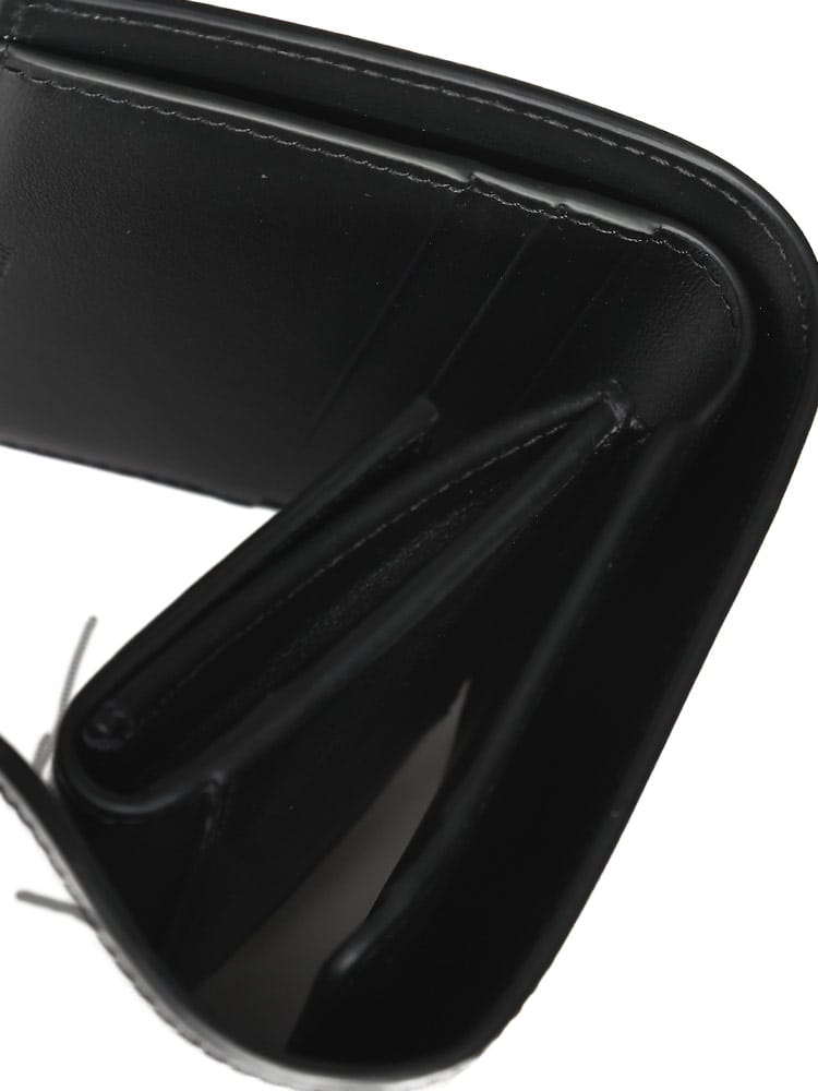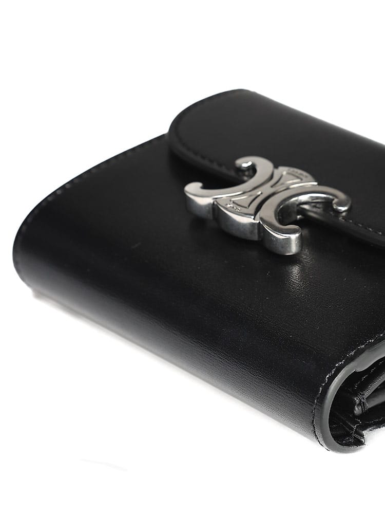 トリオンフ金具が目を引くスモールフラップウォレット。上質なレザーと洗練されたデザインが魅力の二つ折り財布です。カードポケットも充実しており、コンパクトながらも収納力抜群。普段使いにぴったりなアイテムです。