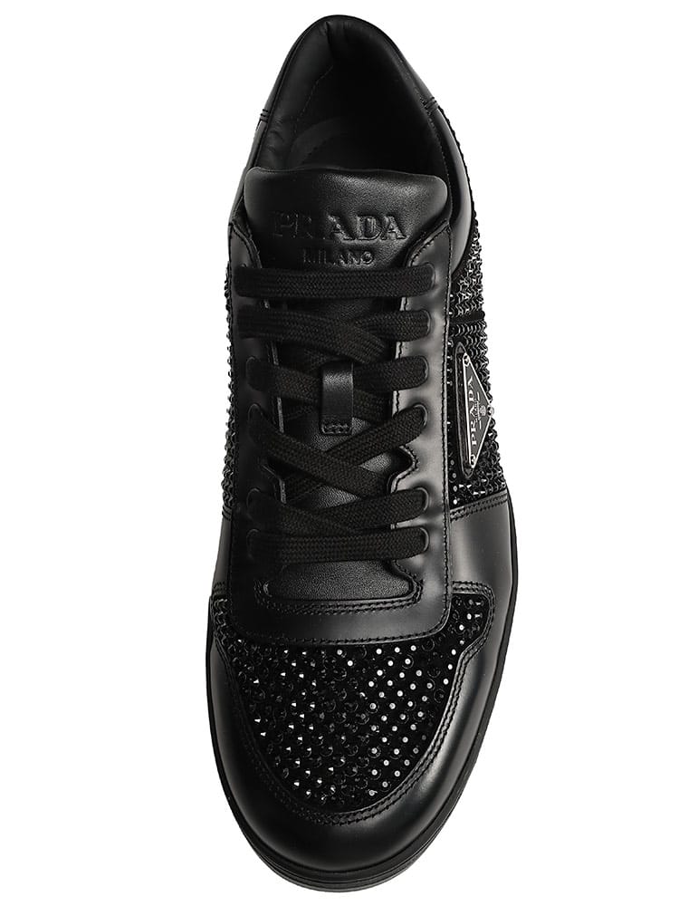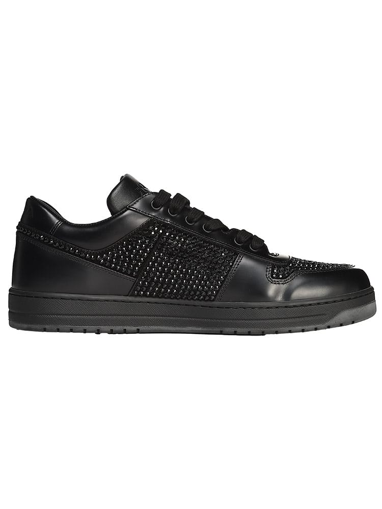 クリスタルの装飾がラグジュアリーな雰囲気を演出するローカットスニーカーです。レースアップスタイルで足にフィットし、快適な履き心地を実現。カジュアル、モードスタイル、フォーマルな装いまで、幅広く合わせやすい一足です。