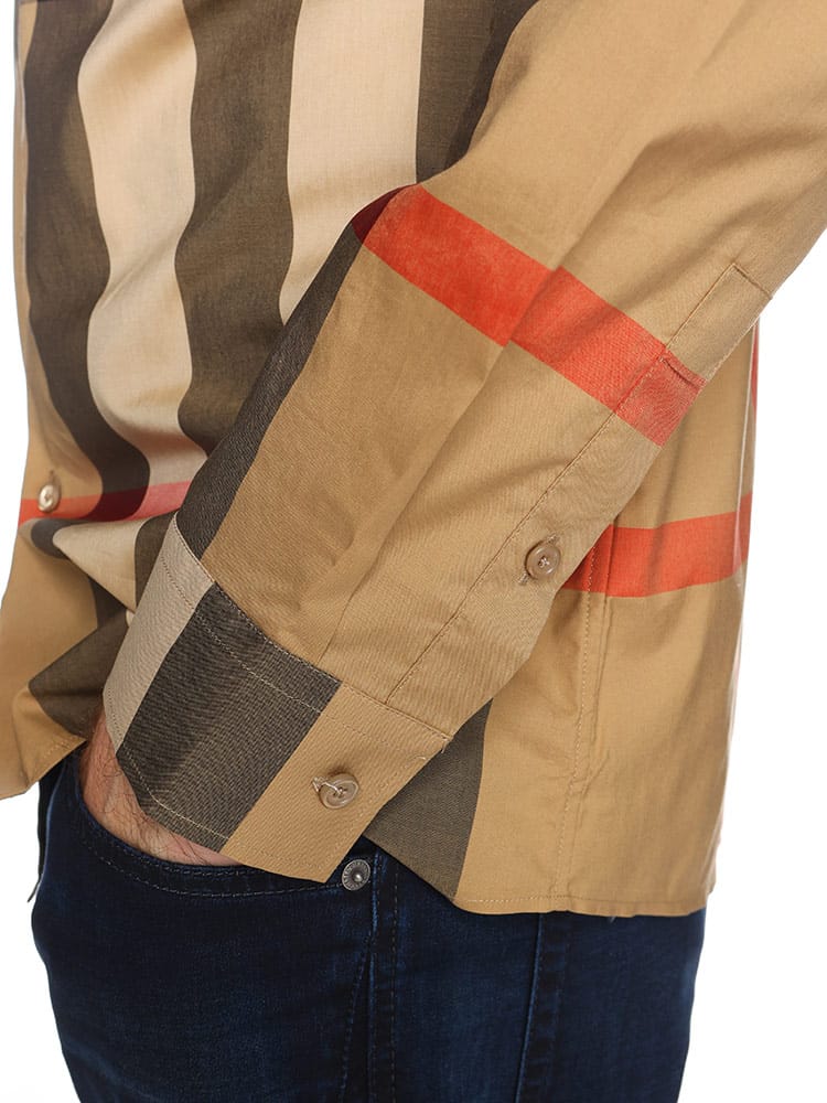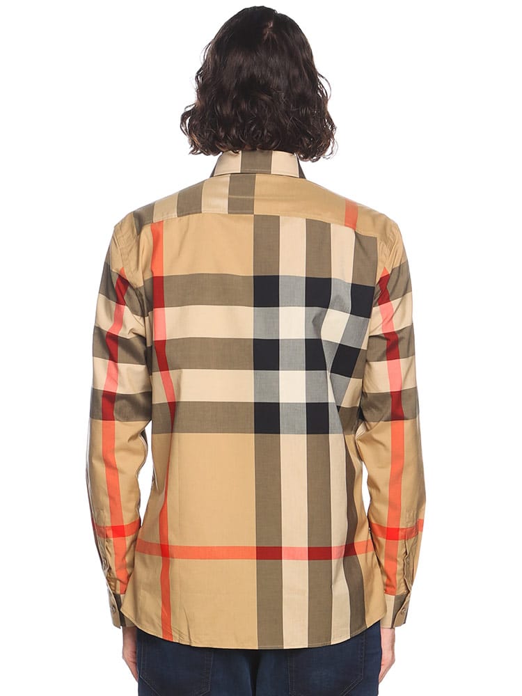 バーバリーチェックのウーヴンコットンポプリンシャツ。スリムフィットに仕立てました。