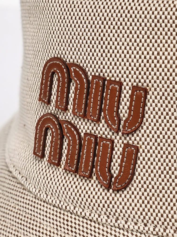 キャンバスを使用し、レザーのMIU MIU ロゴを施したヴィンテージ感のあるバケットハット。
