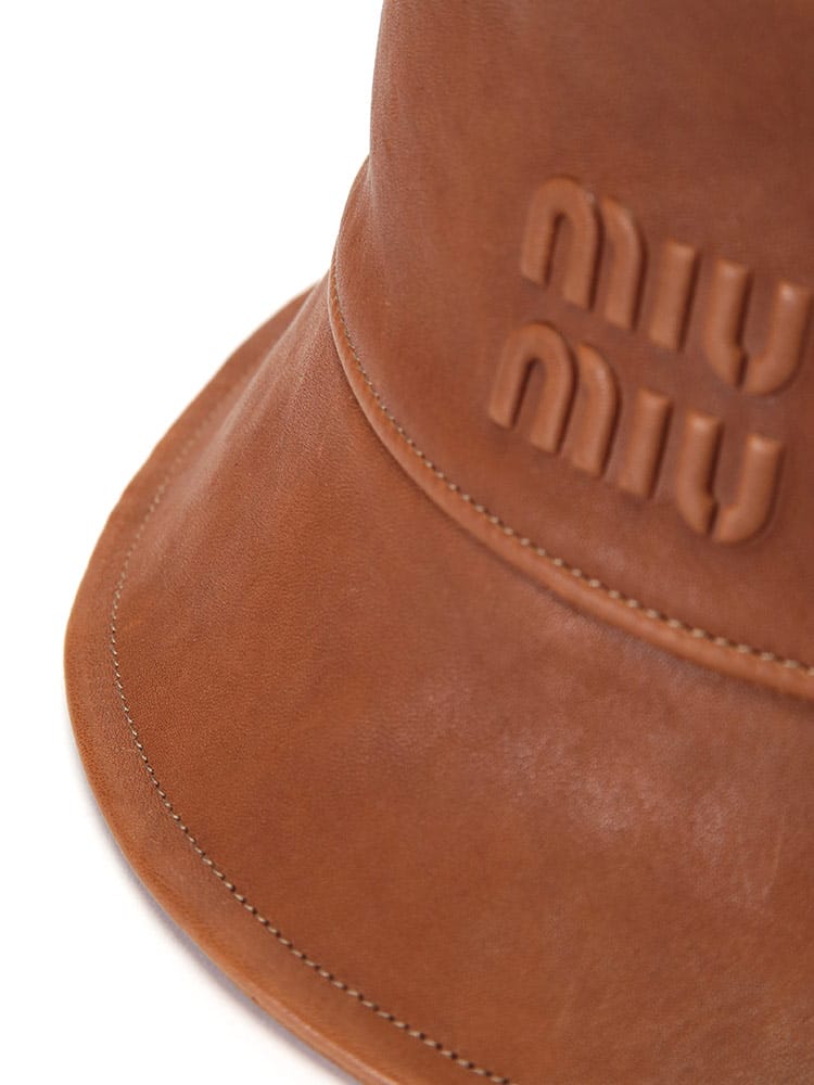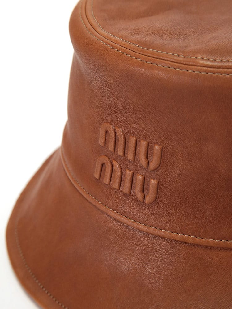 クラシックなバケットハットに、レザーバージョンが登場。アイコニックなエンボス加工のMIU MIU ロゴが、ミュウミュウらしいアクセントを添えています。