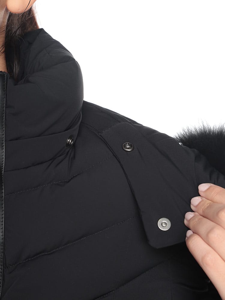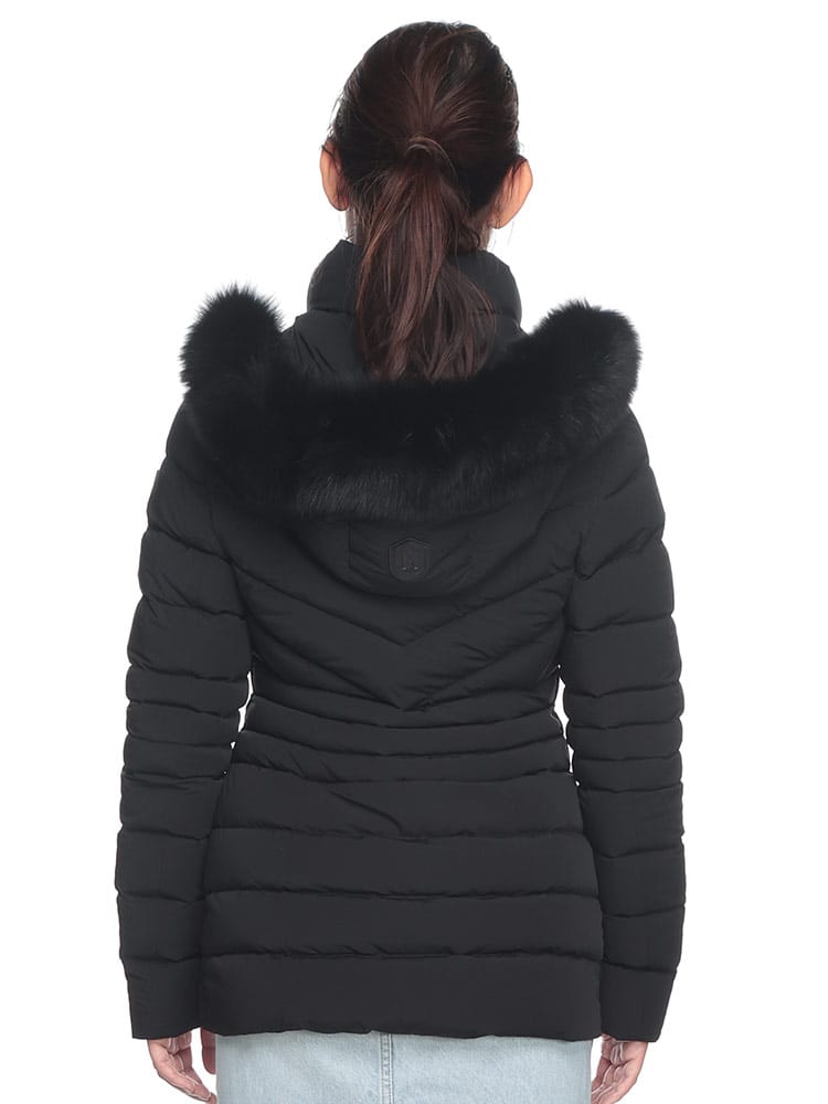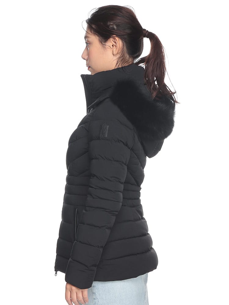 素材 :[表地]リサイクルナイロン82% スパンデックス18% [裏地]リサイクルナイロン82% スパンデックス18% [中綿]リサイクルダウン90% リサイクルフェザー10% [ファー]ブルーフォックス