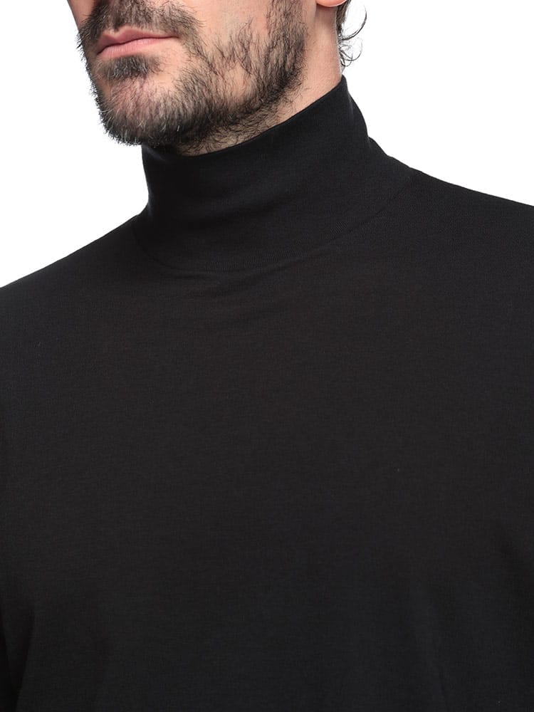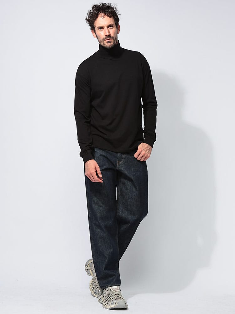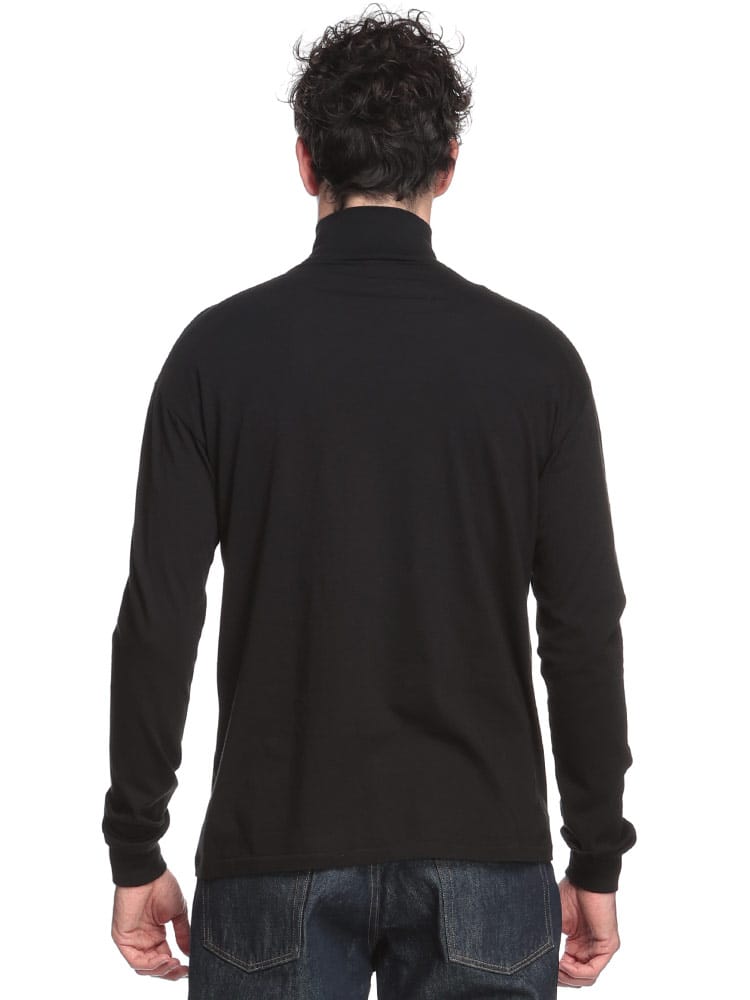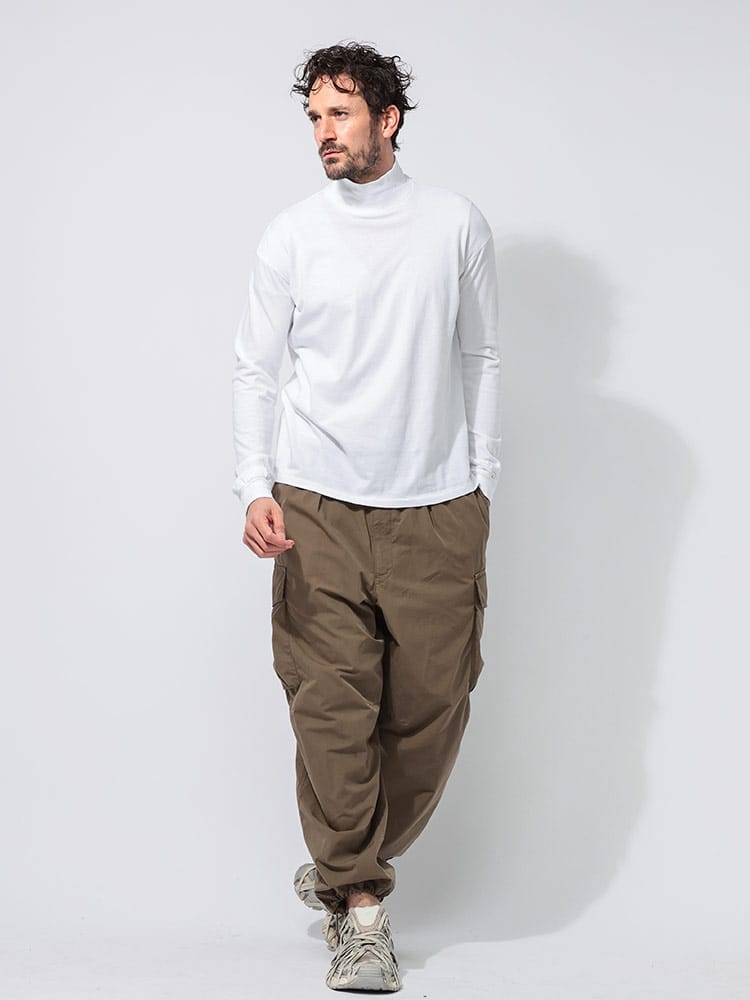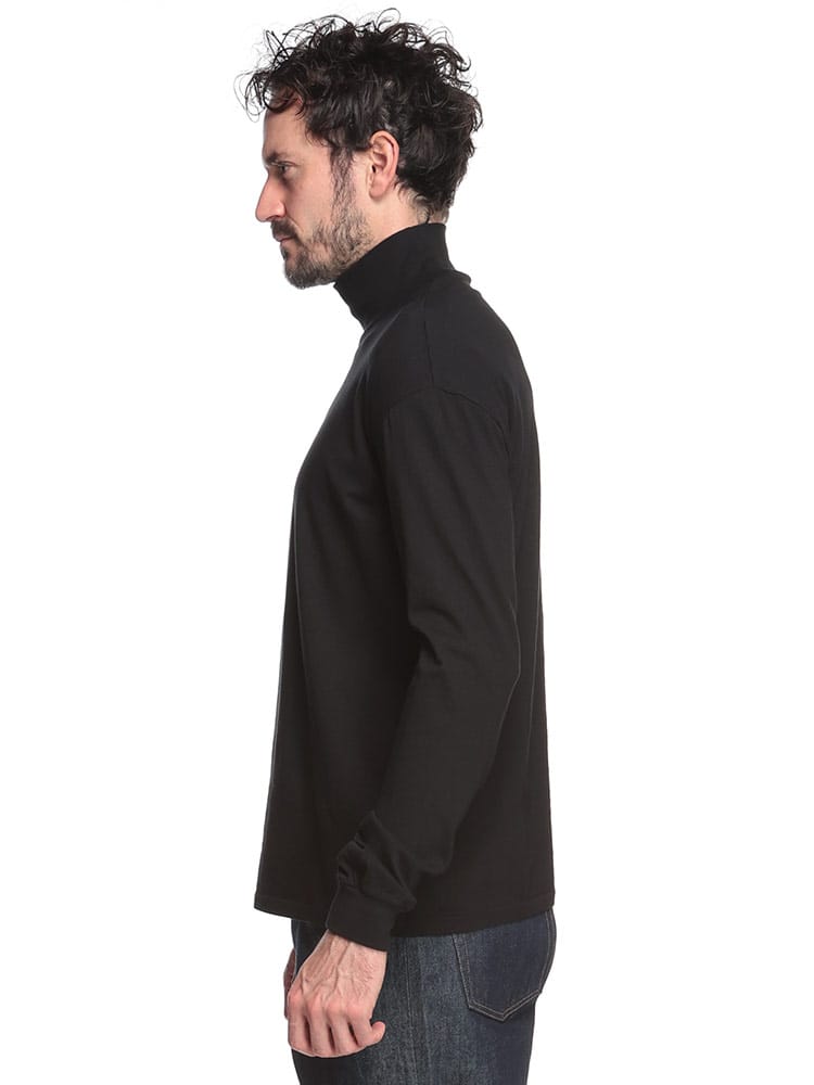 身体に優しくフィットするシームレスな作りが特徴のハイネックロングスリーブTシャツです。上質なコットン素材を使用し、柔らかく滑らかな肌触りが魅力。