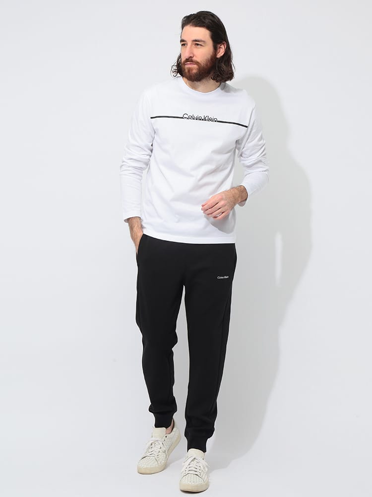 Calvin Klein K10K109940 ワンポイント スウェットパンツ。カルバンクラインらしいミニマルなデザインのスウェットパンツです。左腿にさりげなくあしらわれたロゴがワンポイント。柔らかなコットン素材で着心地抜群。リラックス感のあるシルエットで、デイリーユースにぴったり。