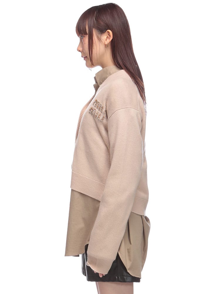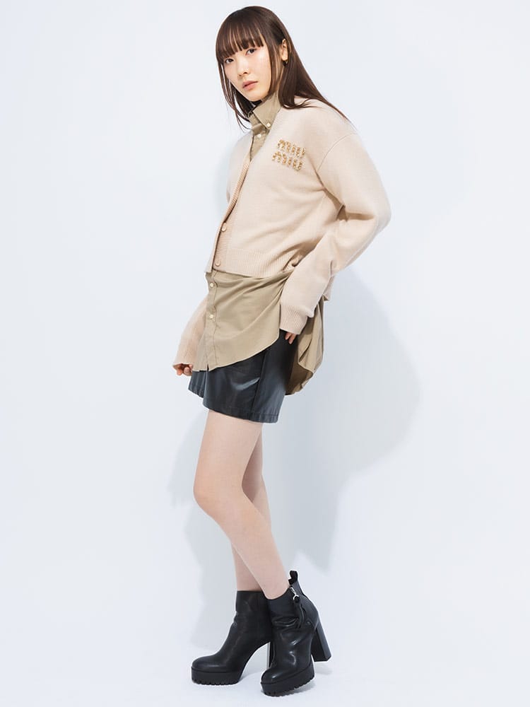 ミュウミュウのカーディガンは、上質なカシミヤ素材に繊細な刺繍が施されたラグジュアリーなアイテムです。ブランドロゴの刺繍がアクセントとなり、洗練された印象を与えます。柔らかな肌触りと保温性が高く、秋冬のワードローブを格上げします。