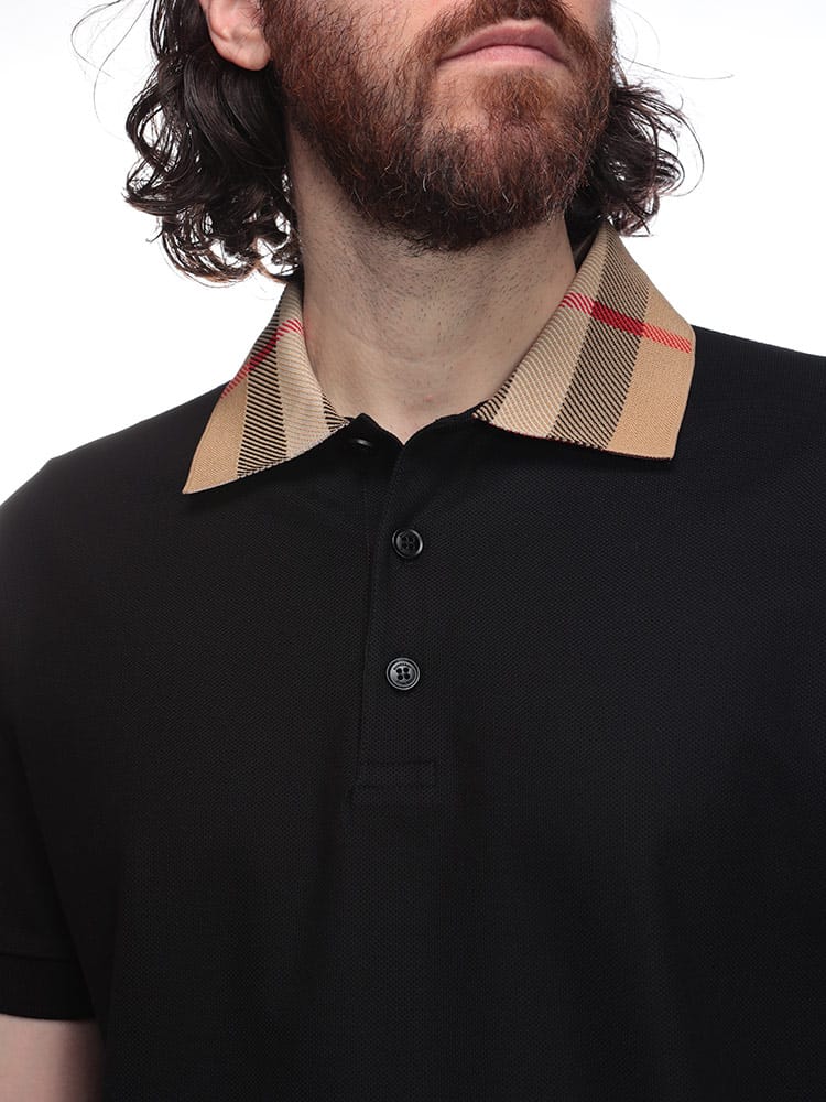 バーバリーのアイコン、チェック柄が襟元に際立つ半袖ポロシャツです。 上質なコットン素材を使用し、快適な着心地を実現。カジュアルながらも上品な印象を与え、様々なコーディネートに合わせやすいアイテムです。スリムフィットでスタイリッシュなシルエットも魅力です。
