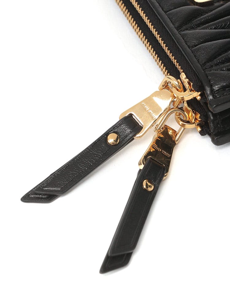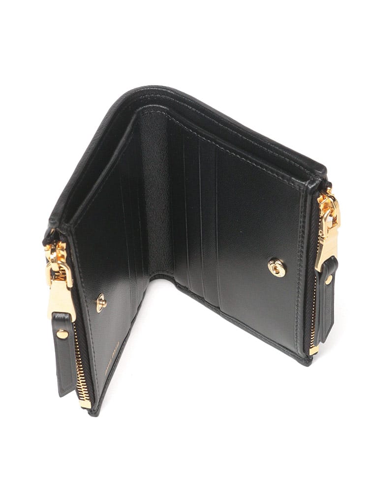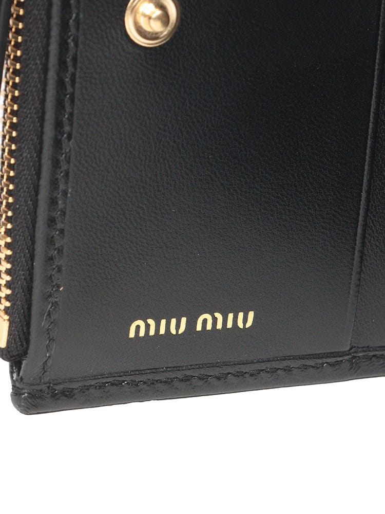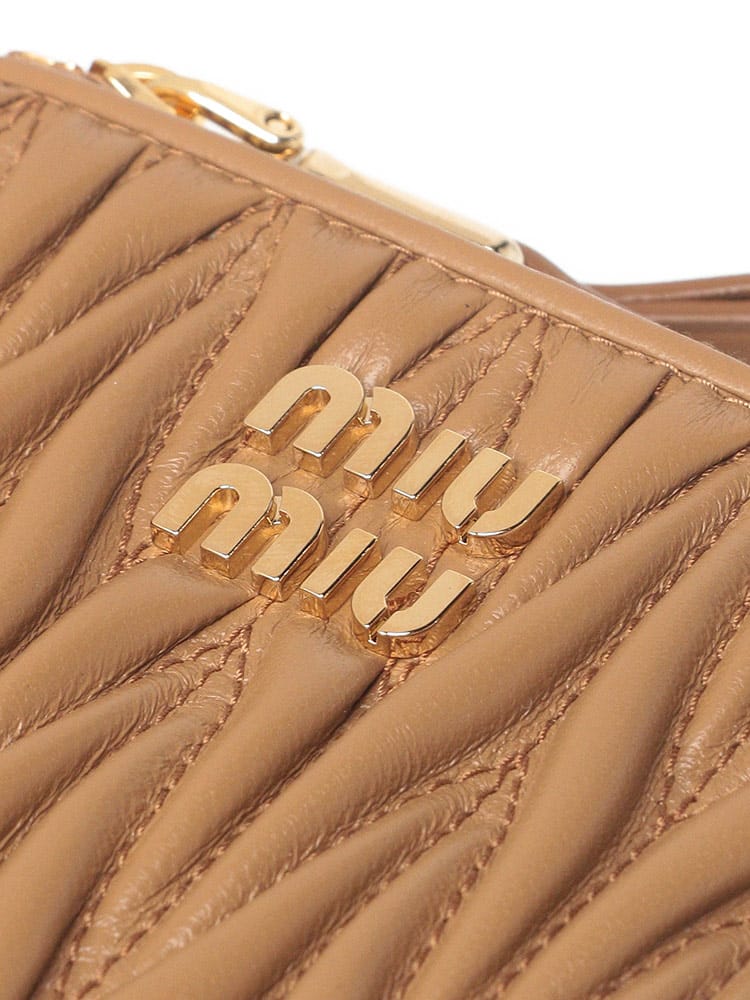 洗練された女性らしさを湛える、ミュウミュウのアイコンウォレット。ミュウミュウを象徴するマテラッセレザーが織りなす、エレガントな2つ折り財布。柔らかな羊革の質感が、手に馴染む心地よさを約束します。菱形のキルティングが立体感を生み出し、リュクスな雰囲気を漂わせます。コンパクトなサイズ感でありながら、札入れ1つ、カード入れ8つ、コインポケット2つと収納力も抜群。ゴールドのロゴがさりげなくブランドの品格を主張します。日常使いから特別な日まで、どんなシーンにも寄り添う、タイムレスなアイテムです。