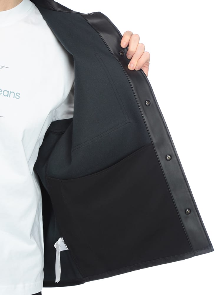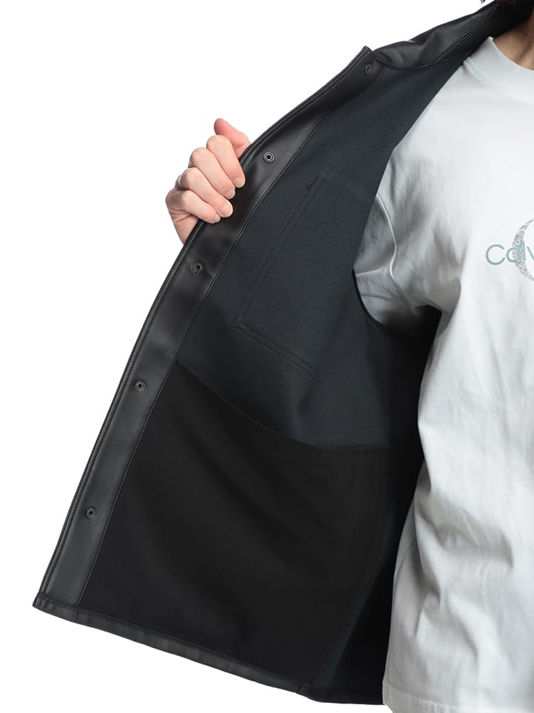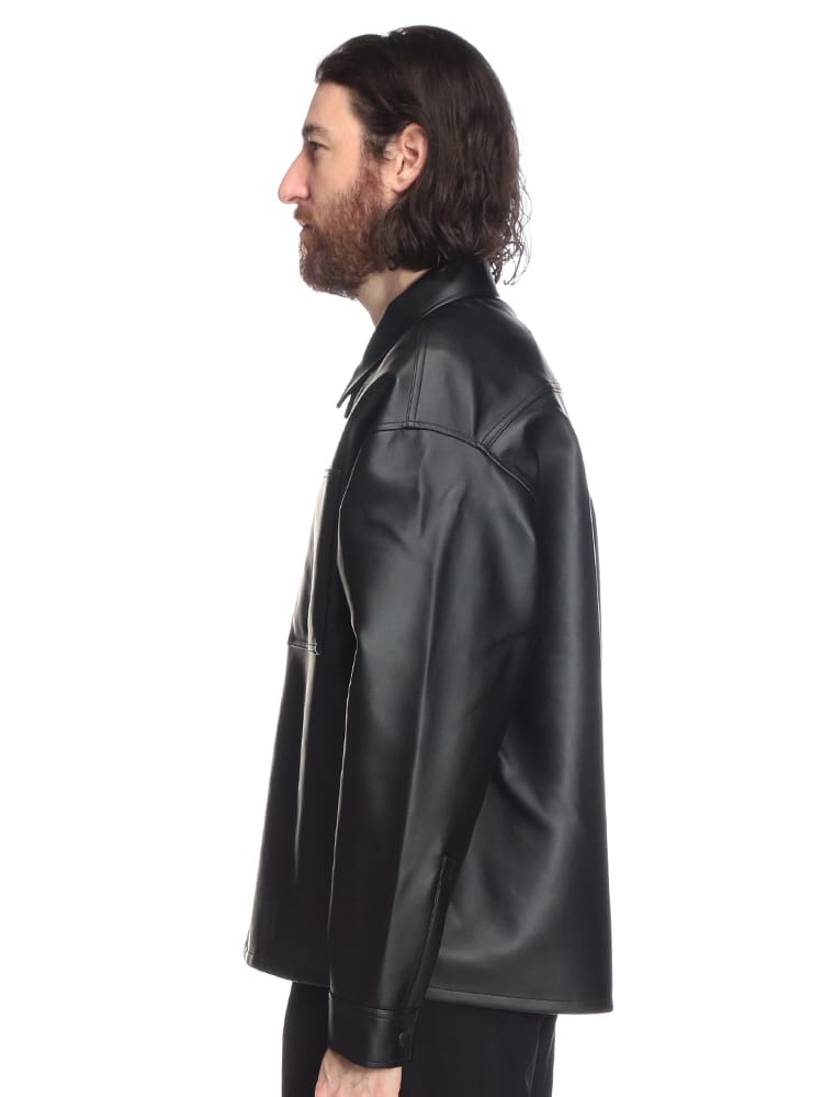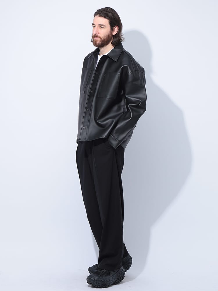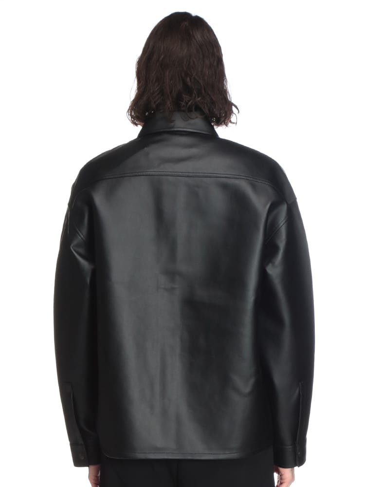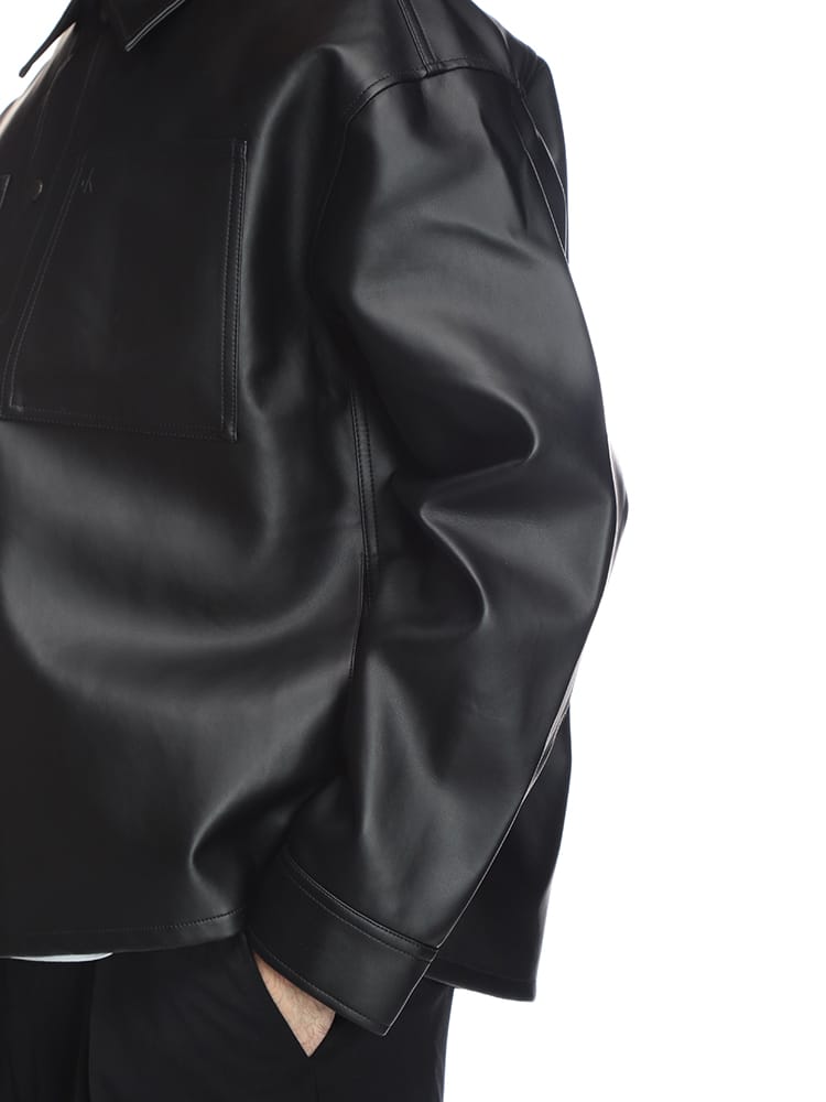 この合成皮革フルボタンシャツジャケットは、洗練されたデザインと着心地の良さが魅力。高品質な合成皮革を使用し、リアルレザーのような質感と上品な光沢感が特徴です。シャツジャケットなので、カジュアルにもきれいめにも着こなせ、秋口から春先まで長いシーズン着用できます。普段使いはもちろん、ちょっとしたお出かけにも最適で、お手入れが簡単で扱いやすいのも魅力です。