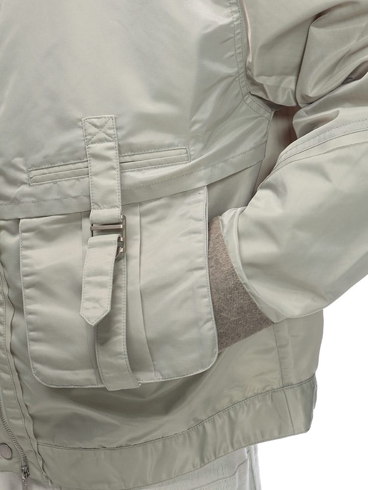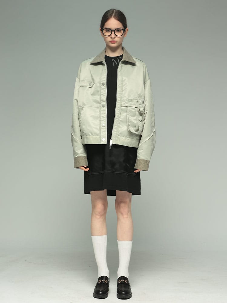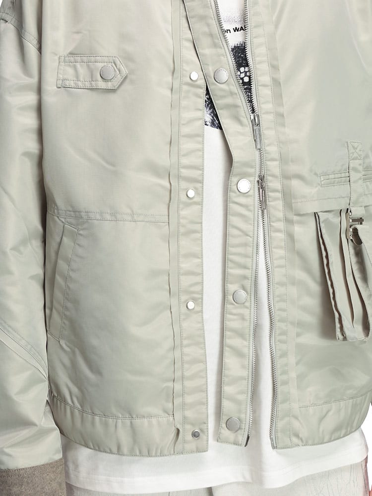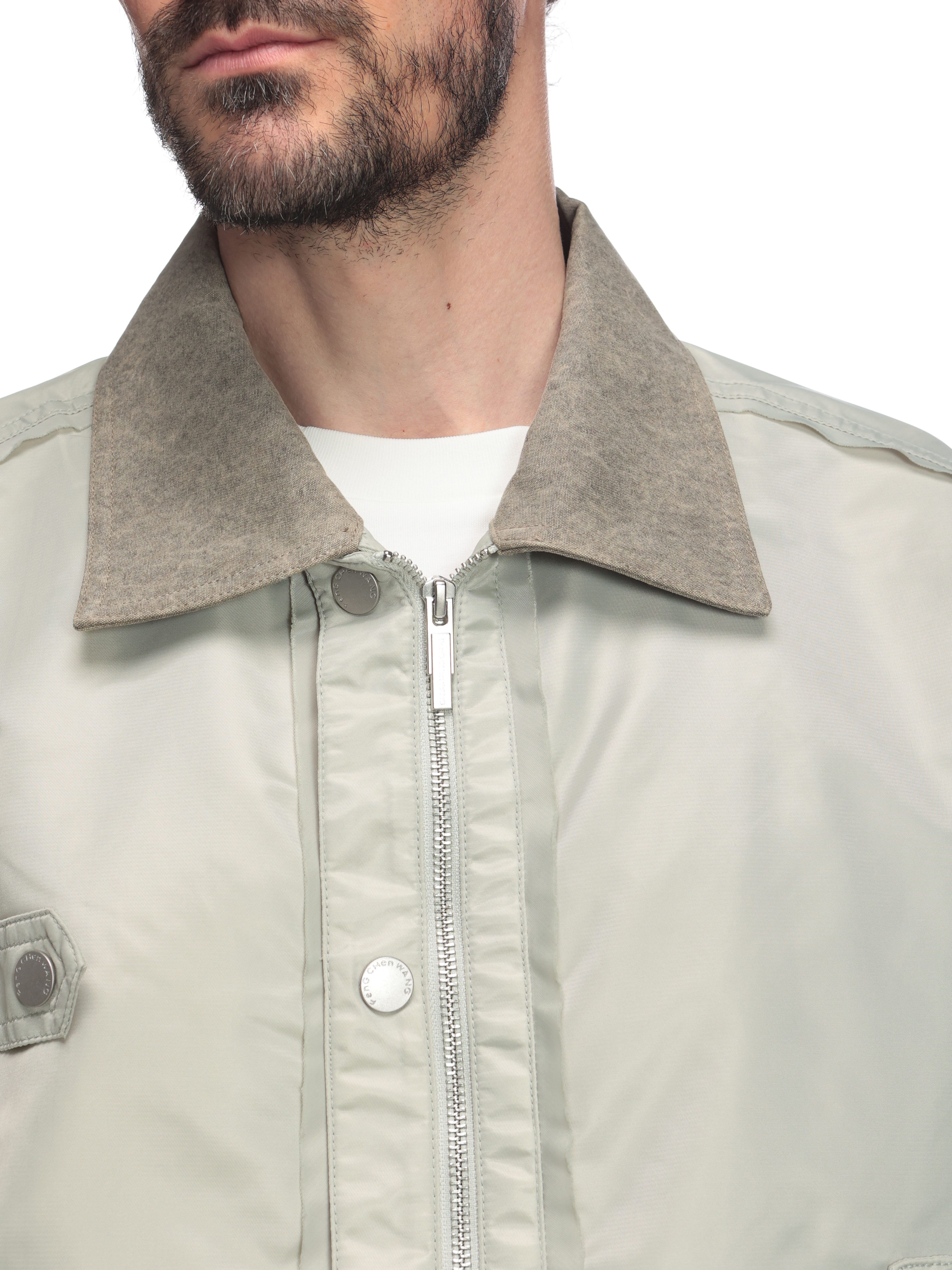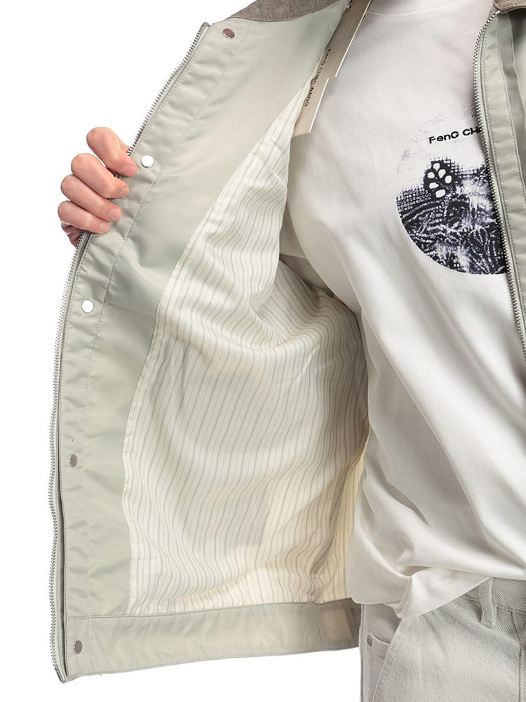 このワークウェア ジャケットは、伝統的な中国の青磁からインスピレーションを受けています。さまざまな着こなしが可能なダブル プラケット デザインが特徴です。