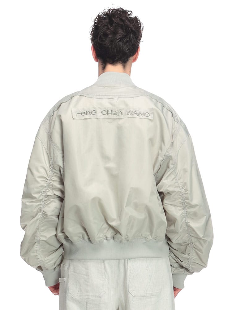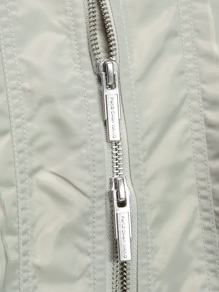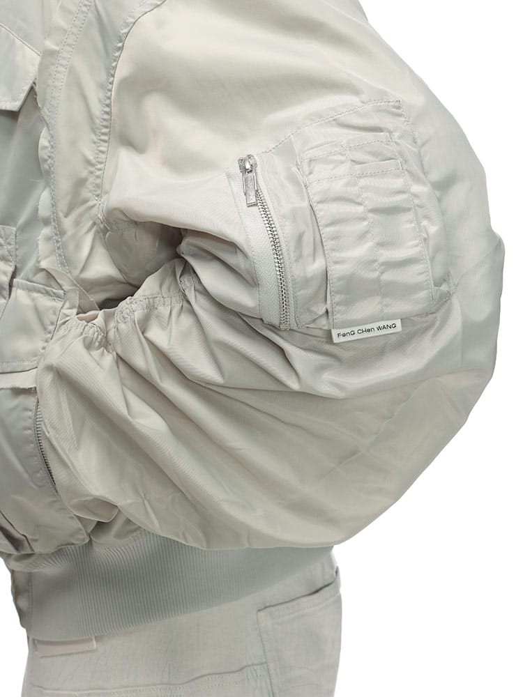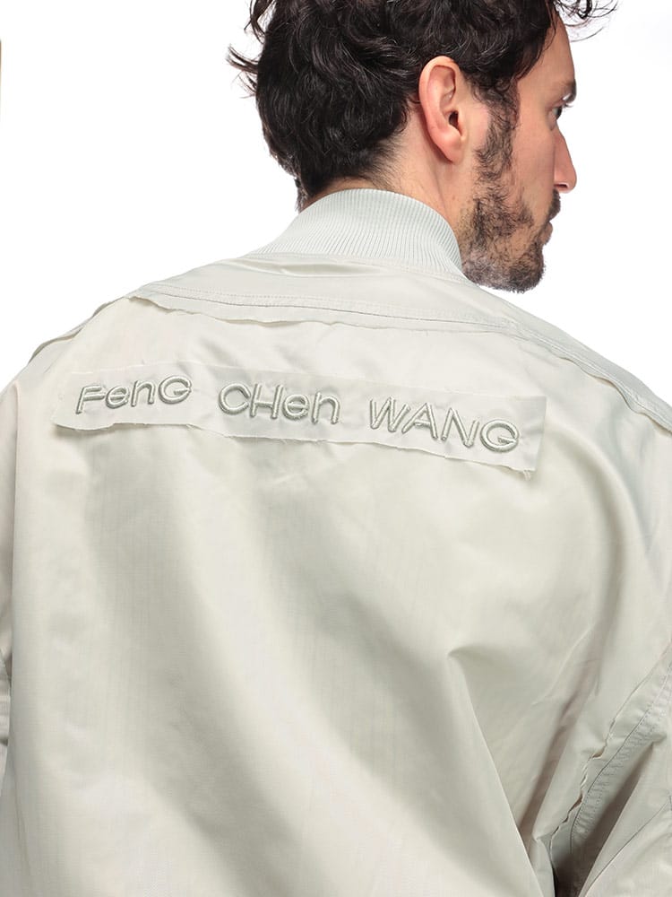 伝統的なボンバージャケットのシルエットに、多数のポケットとフルジップのデザインが特徴です。機能性とデザイン性を兼ね備えた、Feng Chen Wangらしい一着と言えるでしょう。