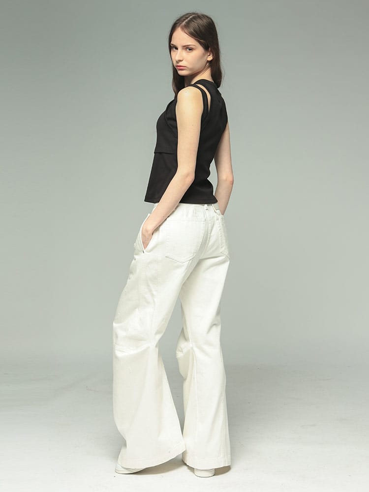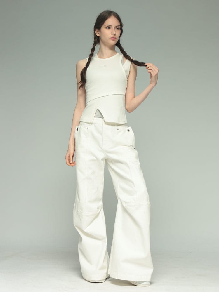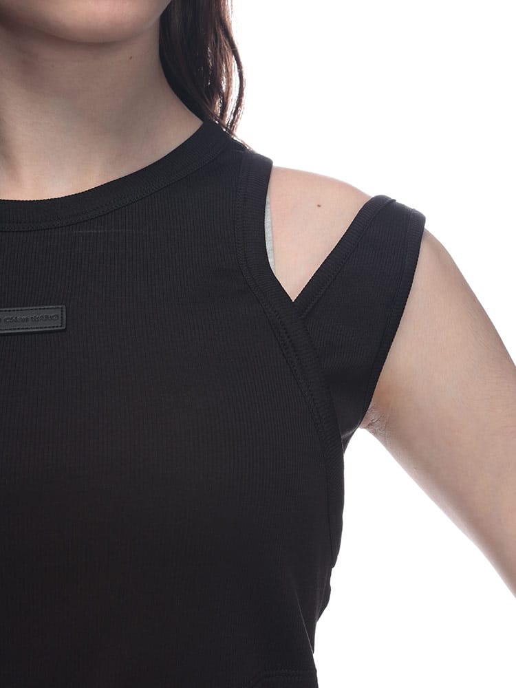 フェン・チェン・ワンの2in1アシンメトリーリブタンクトップは、独創的なデザインが光るアイテムです。アシンメトリーなシルエットとリブ素材の組み合わせが、ユニークでスタイリッシュな印象を与えます。2in1のデザインは、様々な着こなしを可能にし、コーディネートの幅を広げます。一枚で主役になる存在感があり、ファッションのアクセントに最適です。