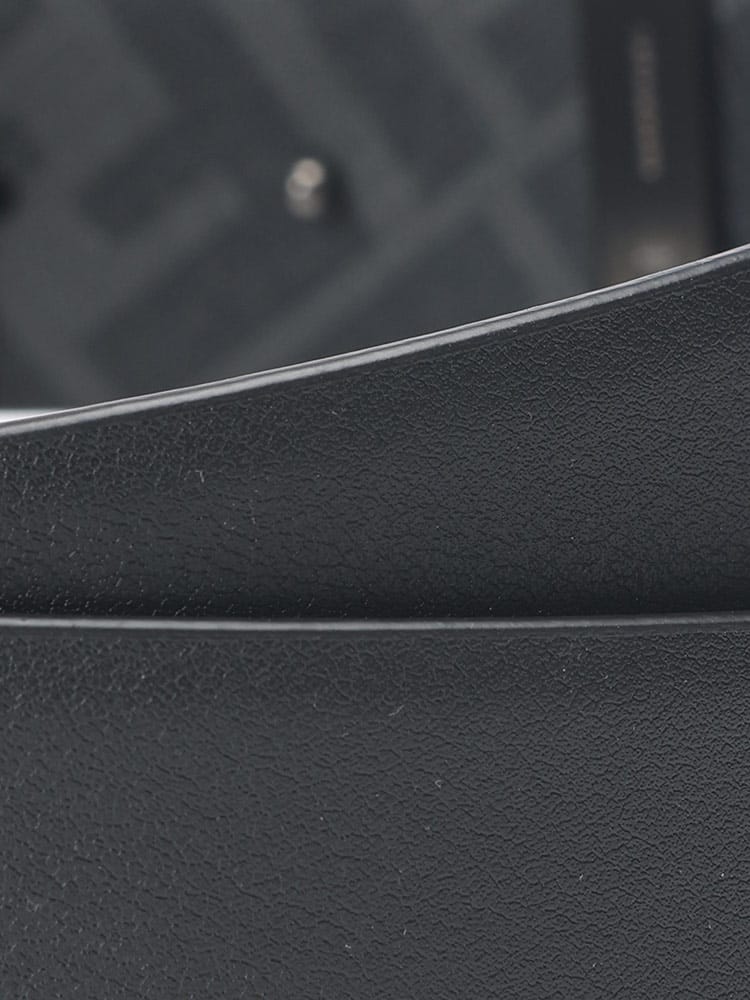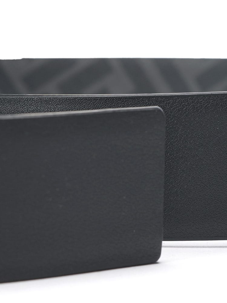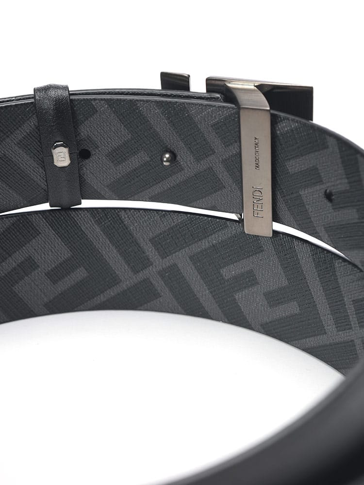 上質なカーフレザーを使用し、滑らかな質感と美しい光沢が、ワンランク上のスタイルを演出。バックルには、フェンディのアイコニックなFFスクエアモチーフが施され、さりげなくブランドを主張。リバーシブル仕様で、シーンやスタイルに合わせて2つの表情を楽しめるのが魅力。ビジネスシーンにはシックなレザー側を、カジュアルな装いにはFFパターン側を、といった使い分けが可能です。ベルトの長さは調節できませんが、洗練されたデザインは、スーツスタイルはもちろん、ジャケットスタイルにもマッチ。フェンディの卓越したクラフツマンシップと、洗練されたデザインが融合した、まさに大人のためのベルトです。