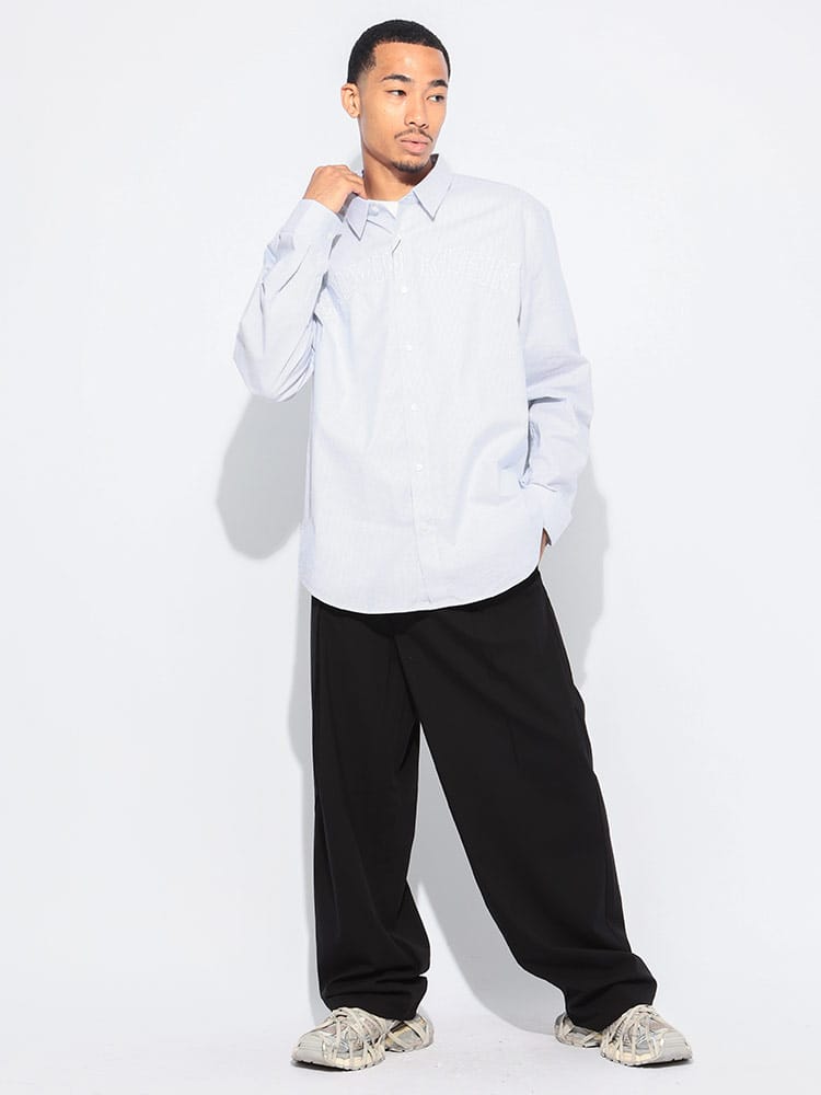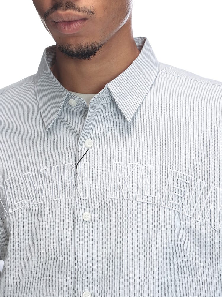 カルバンクラインジーンズのフロントロゴ ストライプ 長袖 シャツ。クリーンなストライプ柄に、フロントのキャッチーなロゴがあしらわれたモダンなデザイン。一枚で着るだけで様になり、軽い羽織りとしても活躍します。デニムはもちろん、様々なボトムスと好相性。カルバンクラインジーンズらしい都会的でエッジの効いたカジュアルスタイルを完成させる、ワードローブに加えたい一着です。