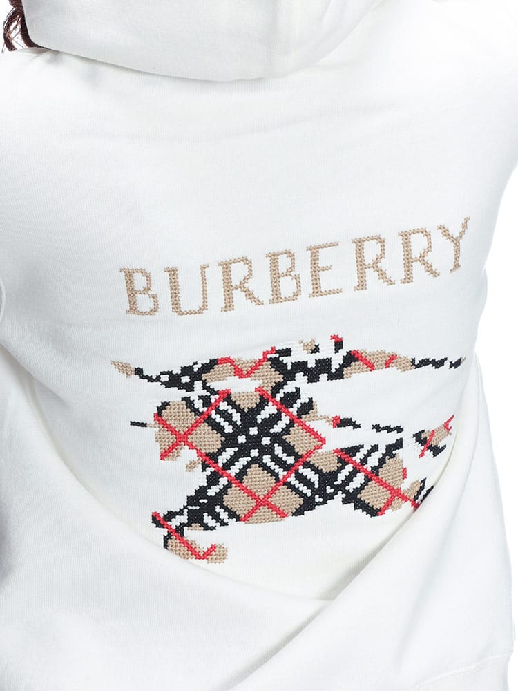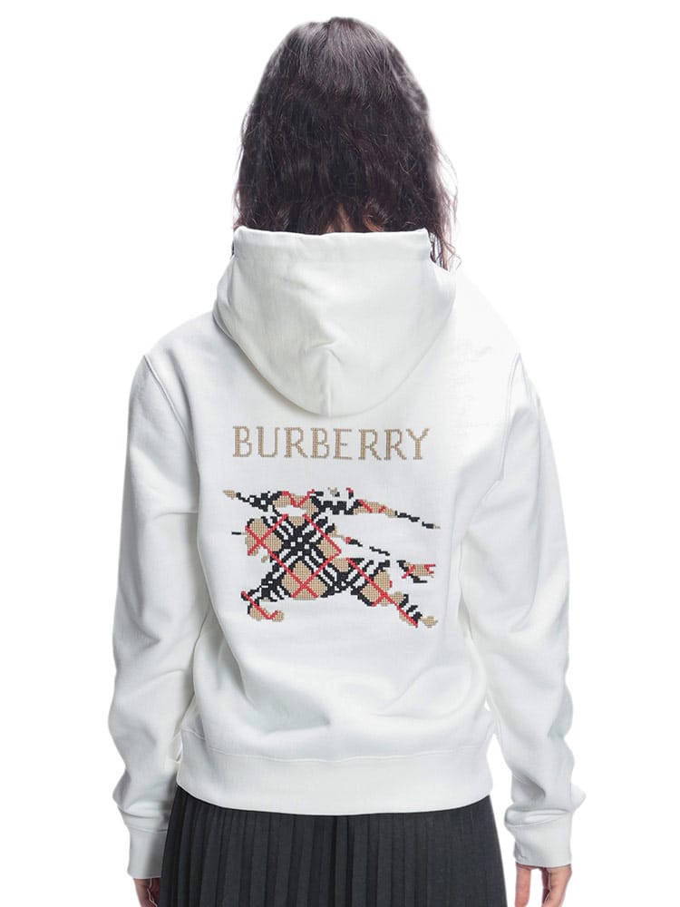 ライトウェイトのループバックコットンを使用したスリムフィットのフーディー。クロスステッチでバーバリーチェックの「馬上の騎士」デザインとロゴをフィーチャーしました。ドローコード付きのフード。マフポケット。リブ編みのトリム。