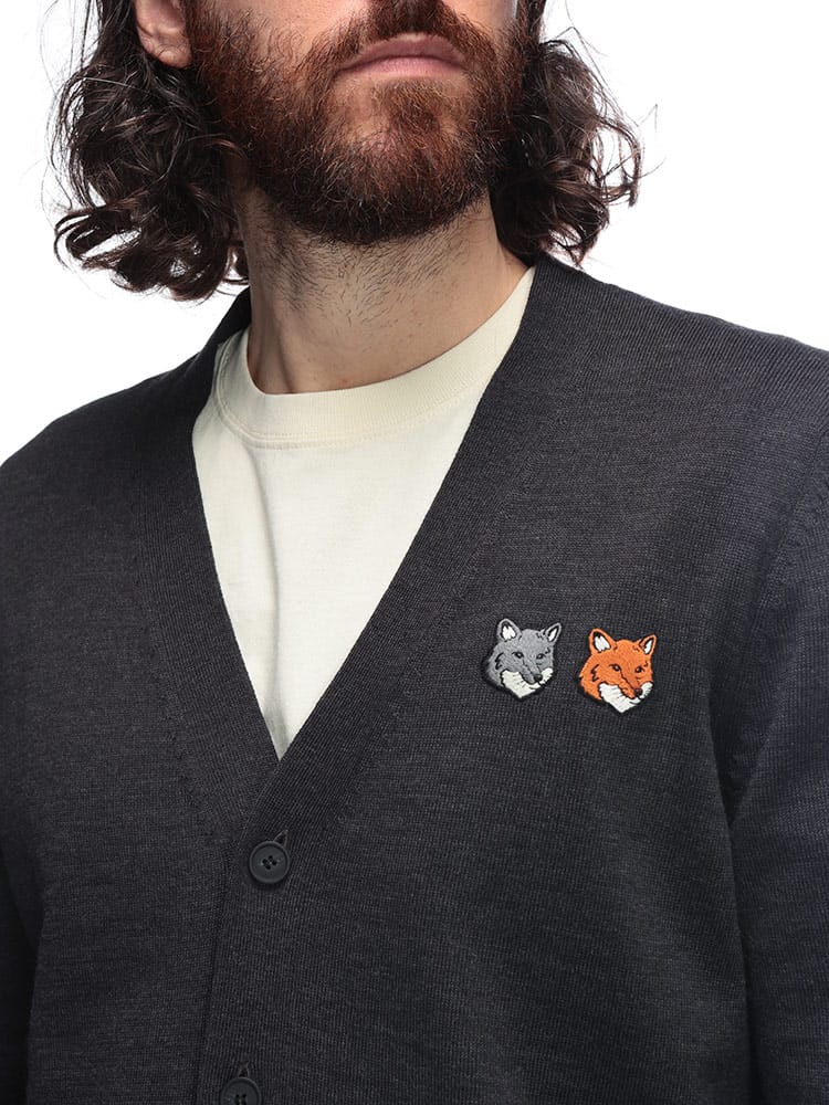 メゾン キツネのダブル ボールド フォックスヘッド パッチ レギュラー カーディガン。ブランドを象徴するキツネのアイコンが、大胆なダブルパッチとして胸元にあしらわれており、遊び心と洗練されたフレンチシックが見事に融合しています。上質な素材を使用しており、快適な着心地と上品な肌触りを実現。カジュアルな装いからきれいめスタイルまで幅広くマッチし、日常のコーディネートにメゾン キツネらしい個性をプラスする、ワードローブに欠かせない一枚です。
