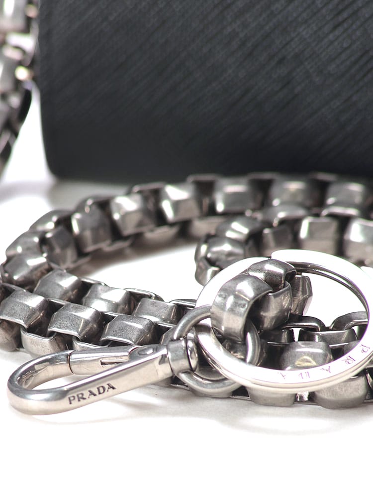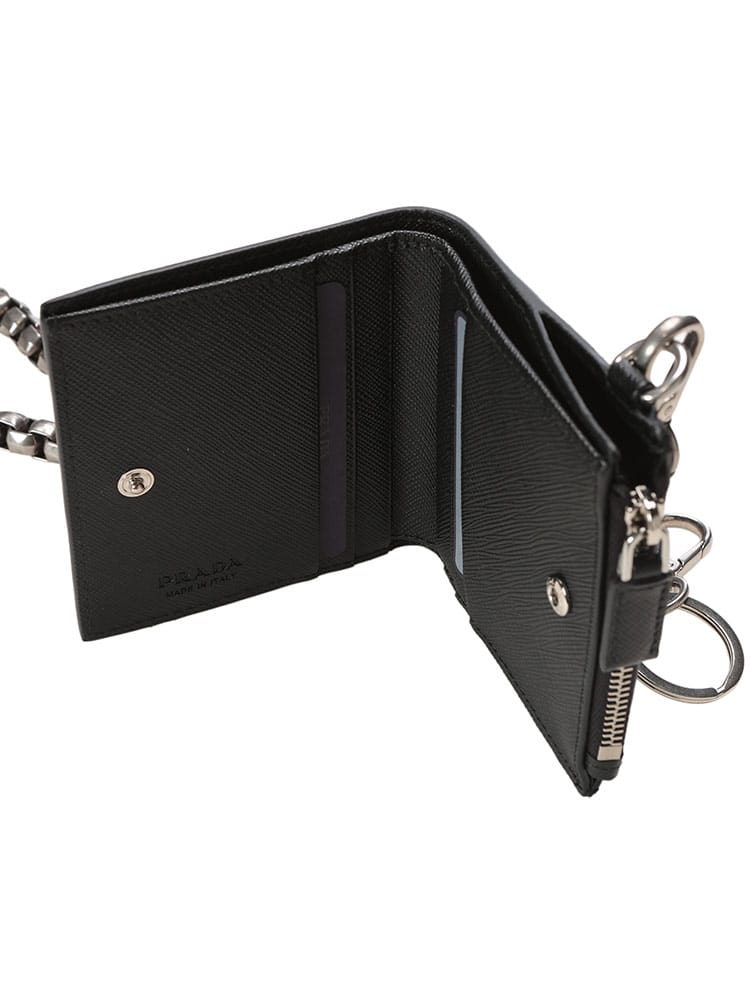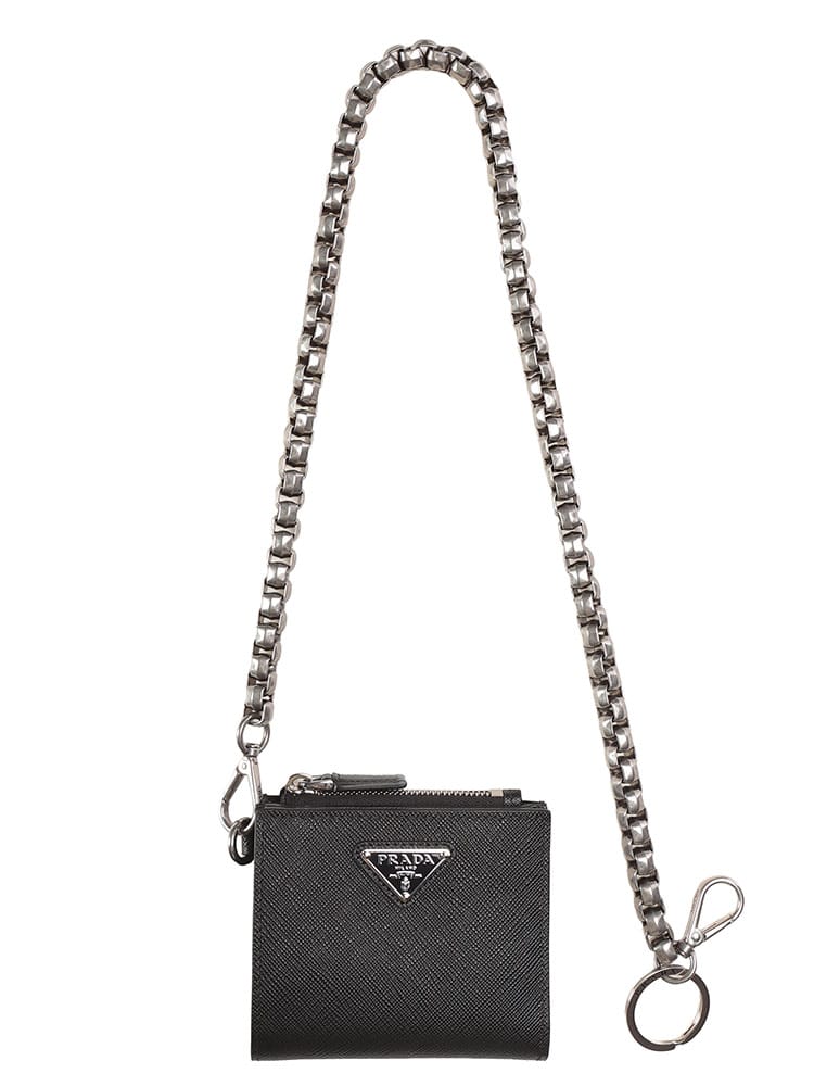 ヴィンテージ仕上げの取り外し可能なチェーンがクラシックなデザインに大胆で意外性のあるアクセントを添える、「サフィアーノ」レザー(牛革)の財布。