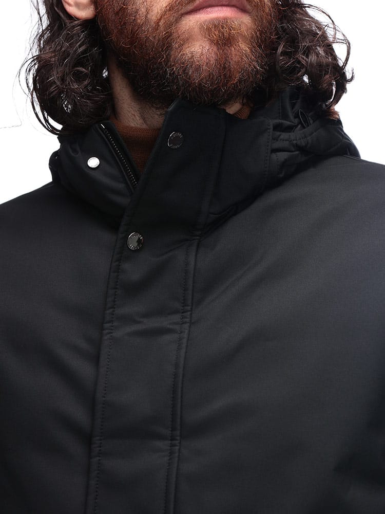 「VERMONT-ADS」は、洗練されたデザインと卓越した機能性を兼ね備えたフード付きダウンコートです。上質なマットな質感の撥水素材に、厳選された最高級のグースダウンを贅沢に充填することで、非常に軽量ながらも抜群の保温性を実現しています。無駄のないミニマルなデザインは、ビジネスシーンから週末のカジュアルな装いまで幅広く対応し、大人の男性にふさわしい上品さを演出。