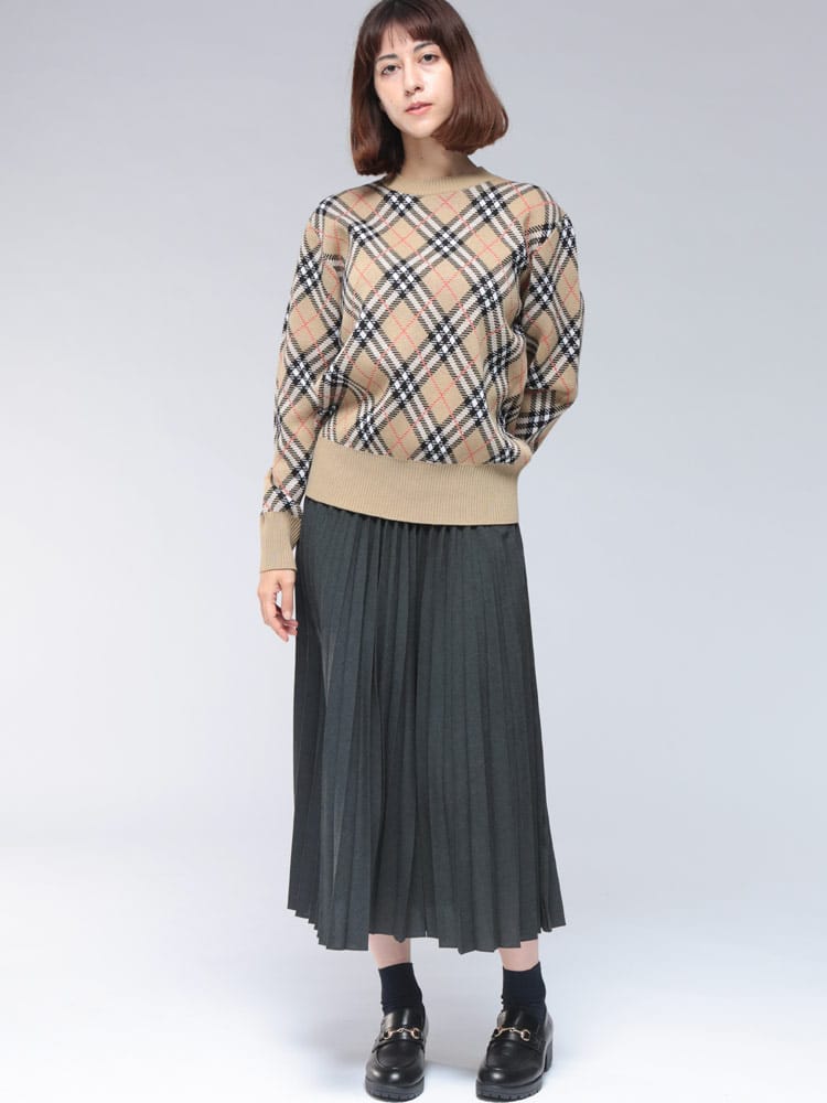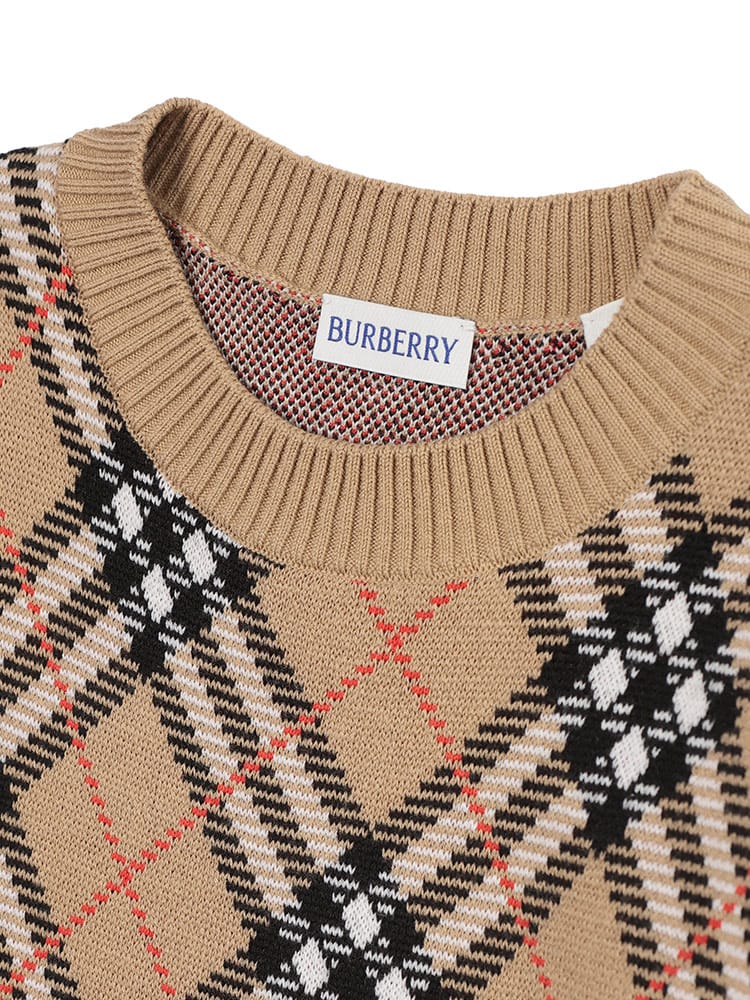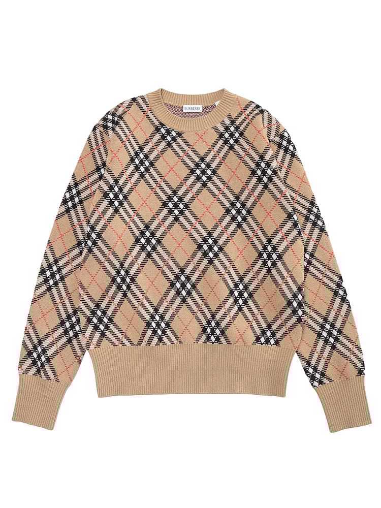 アイコニックなチェック柄が目を引く、バーバリーのクルーネックセーター。上質なウールを贅沢に使用し、暖かく柔らかな着心地を実現しました。繊細なエンブロイダリーが施されたチェック柄は、カジュアルながらも上品な印象を与えます。一枚で主役になる存在感で、シンプルなボトムスと合わせるだけで洗練された大人のスタイルが完成します。ブランドの伝統とモダンな感性が融合した、タイムレスな一枚です。