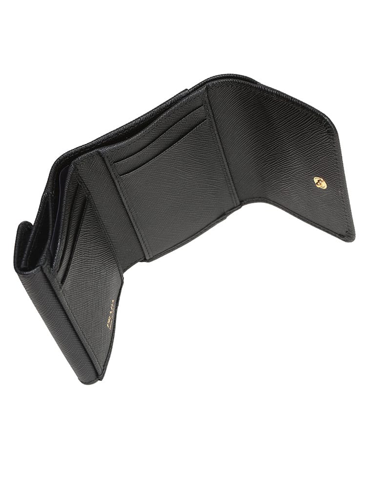 プラダを象徴するサフィアーノレザーを使用した、洗練されたアイテムです。独特の型押し加工が施されたサフィアーノレザーは、傷や汚れに強く、耐久性に優れています。フロントに配されたアイコニックなトライアングルロゴが、ミニマルながらも確かな存在感を放ちます。コンパクトながらも収納力があり、ビジネスからデイリーまで、あらゆるシーンでスマートに活躍する、タイムレスな魅力を持つ財布です。