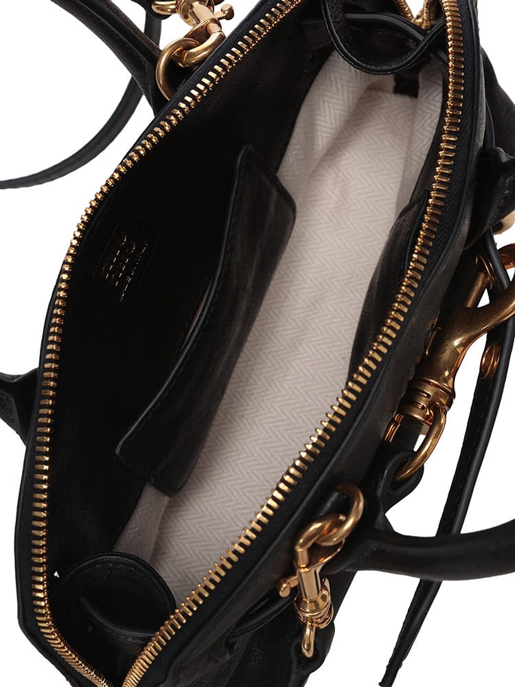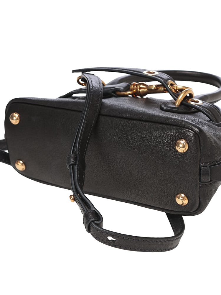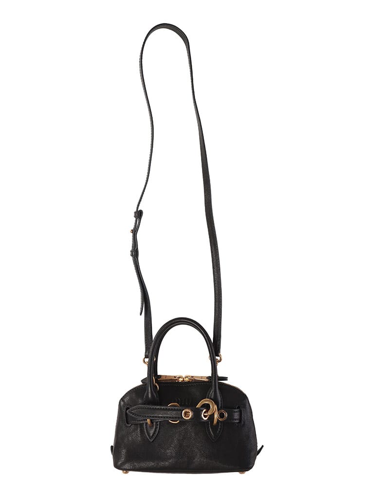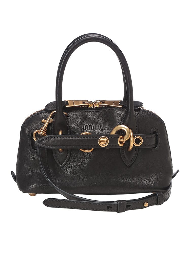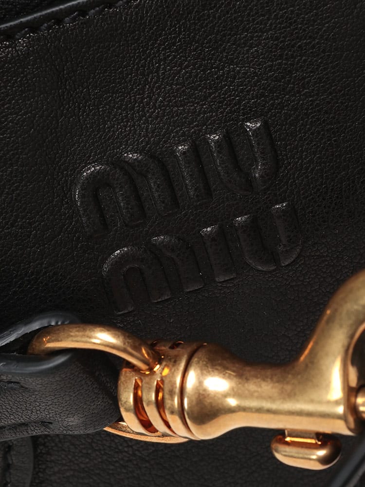 ミュウミュウらしい遊び心と上質な素材が融合したミニバッグです。柔らかなナッパレザーの質感と、洗練されたコンパクトなフォルムが魅力。コーディネートにチャーミングなアクセントを加え、デイリーからパーティーシーンまで幅広く活躍します。スマートフォンやリップなど必需品をスマートに持ち運べ、持つだけで気分が高まる、ミュウミュウならではのキュートでエレガントな逸品です。