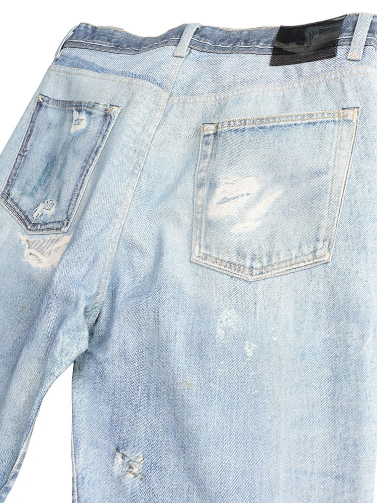 ストリートとクラフトマンシップが融合した、アワーレガシーの「THIRD CUT」ジーンズ。ヴィンテージデニムを緻密に再現したダメージプリントは、長年穿き込んだようなリアルな風合いを演出。芸術的なだまし絵の手法で、新品でありながらも唯一無二の存在感を放ちます。上質なイタリアンデニムの風合いはそのままに、リラックス感のあるワイドストレートシルエットが、洗練された大人のカジュアルスタイルを完成させます。