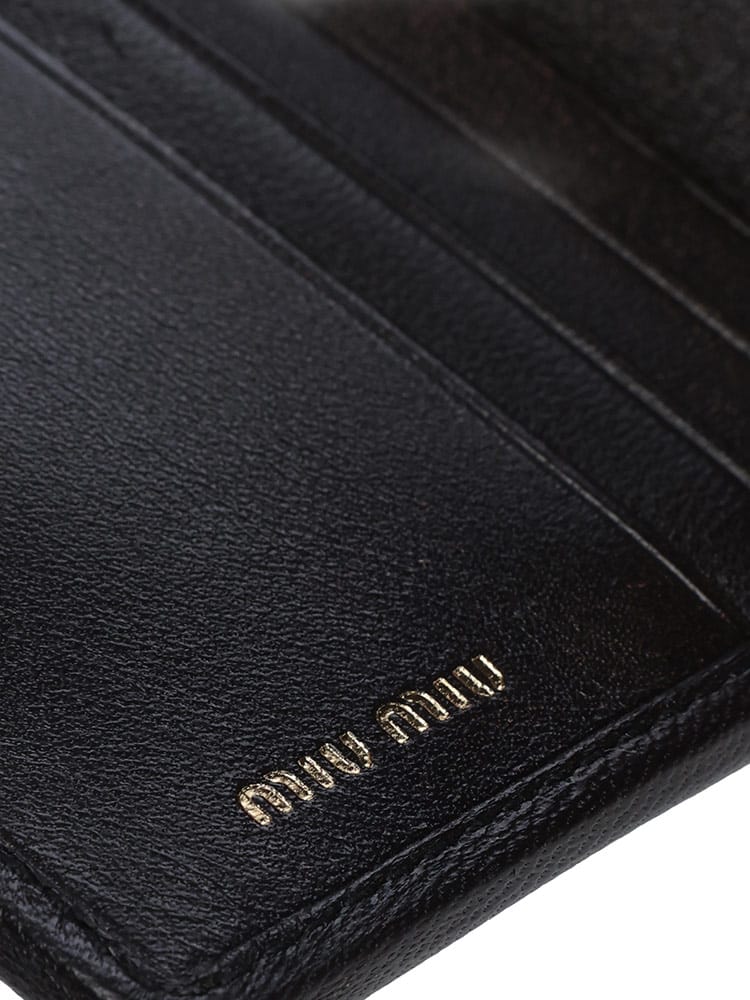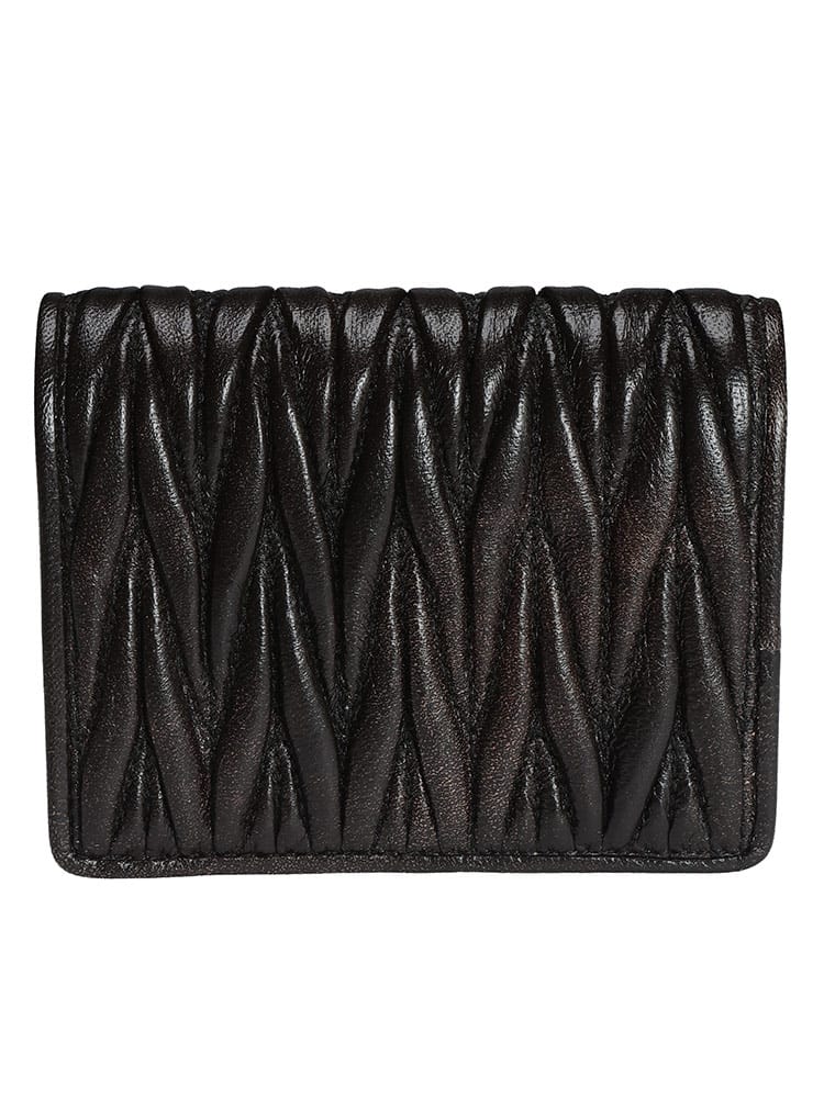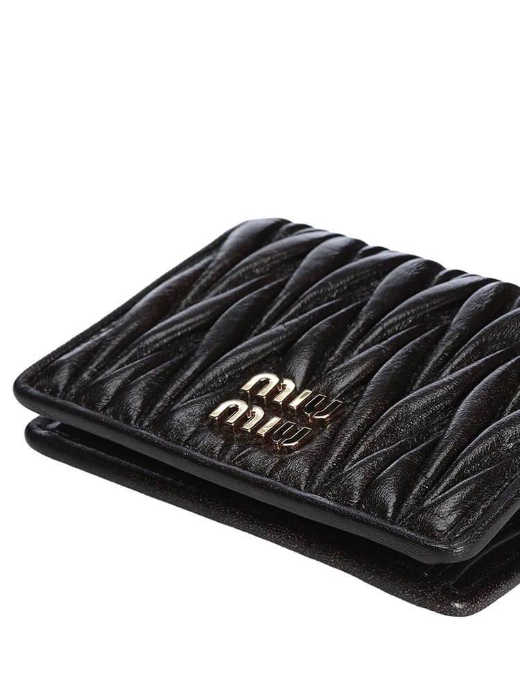 柔らかなナッパレザーに施された、アイコニックなマテラッセのキルティングが目を引く、MIU MIUのスモールウォレット。ふっくらとした立体的なデザインが、フェミニンでリュクスな雰囲気を醸し出します。コンパクトなサイズながら、札入れ、カードスロット、そして独立した小銭入れを備え、機能性も抜群。持つ人の個性を際立たせる、洗練された大人のための逸品です。