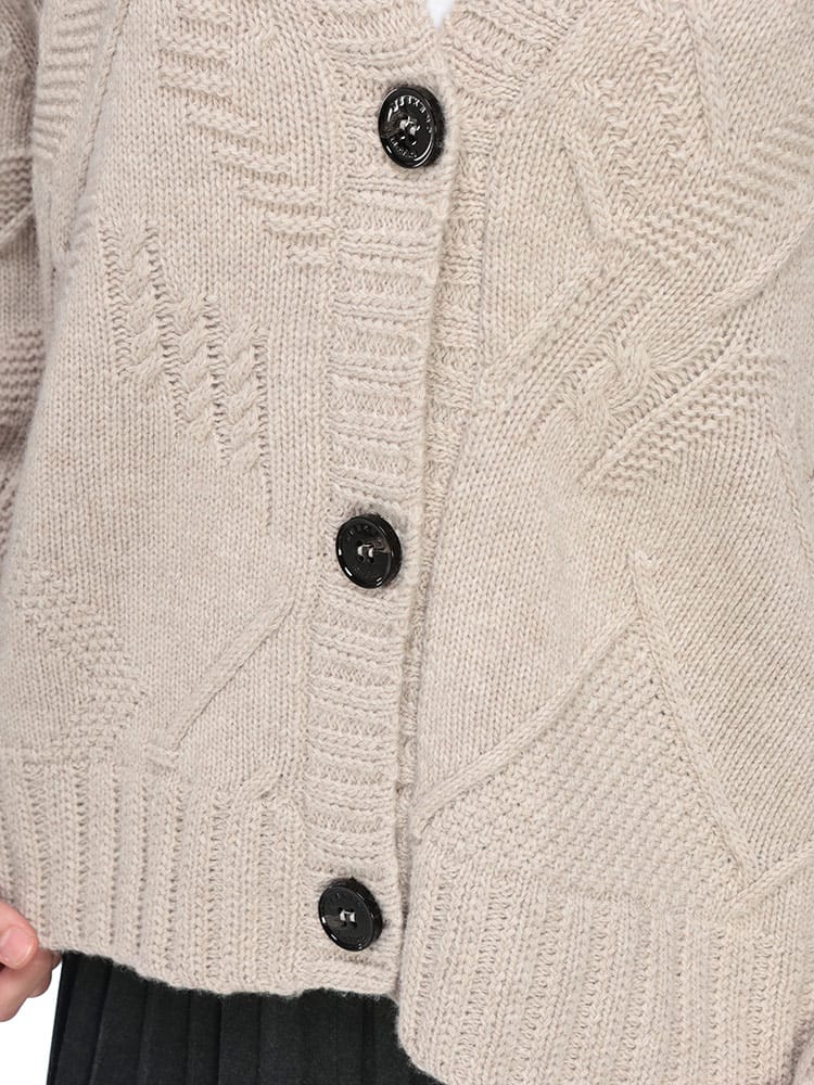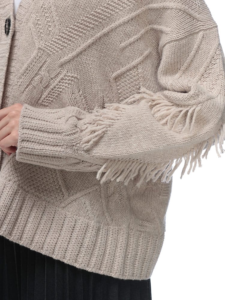 ウールケーブルニットカーディガンSTALLOは、クラシックなケーブル編みが特徴です。ふっくらとした上質なウール素材を使用しており、暖かく柔らかな着心地が魅力。ゆったりとしたシルエットで、シャツやTシャツとのレイヤードも楽しめます。シンプルながらも存在感があり、秋冬のコーディネートを上品に彩るタイムレスな一着です。