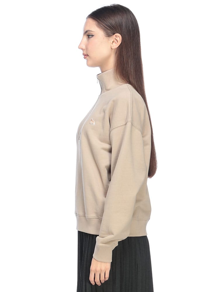 メゾンキツネのハーフジップトレーナーは、胸元の「BABY FOX」のワンポイント刺繍が可愛らしいアクセントです。ハーフジップのデザインが、スポーティでありながらも上品な印象を与えます。上質なコットン素材で、柔らかく快適な着心地。一枚で着るのはもちろん、インナーにタートルネックなどを合わせるレイヤードスタイルも楽しめます。