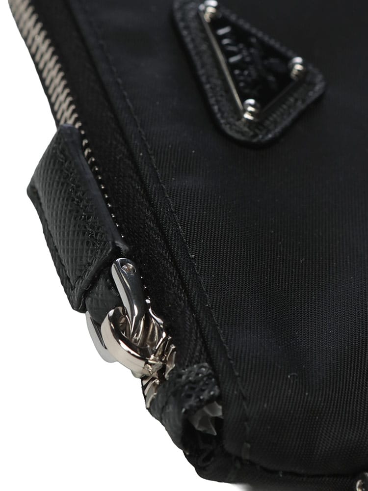 アイコニックな機能美を凝縮した、ミニマルポーチ。PRADAの哲学を体現する、テクニカルナイロンとトライアングルロゴが融合したミニポーチ。軽量で耐久性に優れた上質素材を用い、ミニマルな中に高い機能性を追求。ブランドの象徴であるエナメルのトライアングルロゴが、モードな存在感と確かなステータスを主張します。キーリング付きで、コインケースやマルチポーチとしてマルチに活躍。バッグから取り出す瞬間や、ベルトループに引っ掛けた姿さえもスタイリッシュに見せる、プラダらしい洗練されたアクセサリーです。