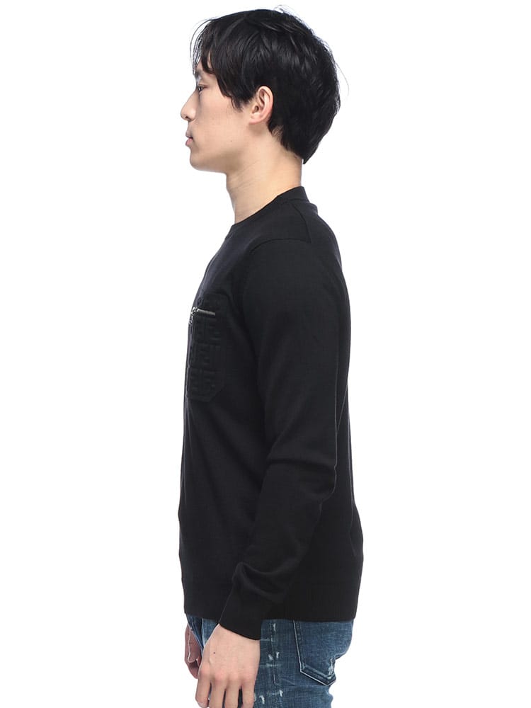 メゾンが誇るアイコニックな存在感。ラグジュアリーの極み、フェンディから、ブランドのDNAを凝縮したクルーネック ニットがお目見えです。上質なテクスチャーが叶える、しなやかで心地よい肌触り。一枚で着るだけで、その洗練された風合いが着る人に優雅なムードを添えます。最大の魅力は、胸元に配されたアイコニックなズッカ柄(FFロゴ)ポケット。主張しすぎないながらも、一目でフェンディとわかる圧倒的な存在感を放ち、装いにステータスを刻みます。ジャケットやコートのインナーとしても映える、ハイエンドな大人のためのプルオーバー。冬のスタイルを格段にランクアップさせる、投資価値のある逸品です。
