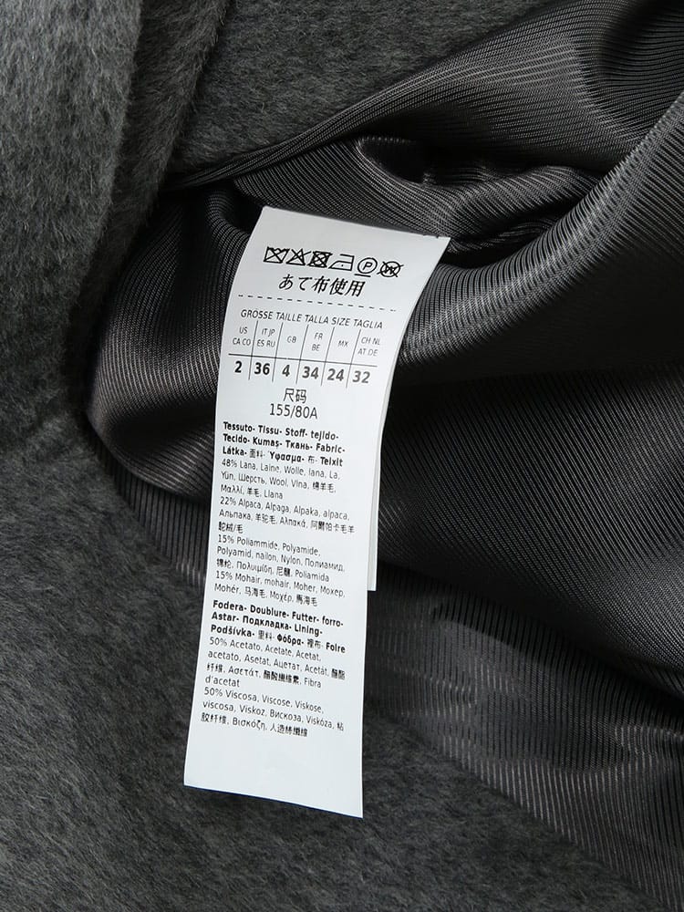 素材 :[表地]ウール48% アルパカ22% ポリアミド15% モヘア15% [裏地]アセテート50% ビスコース50%