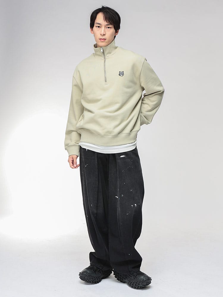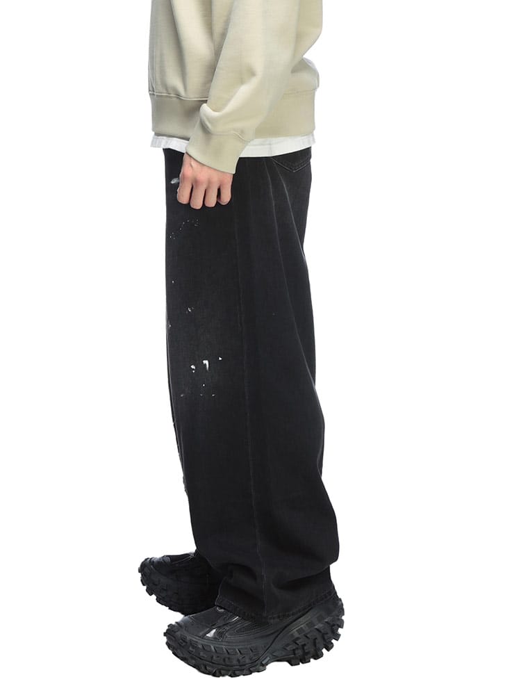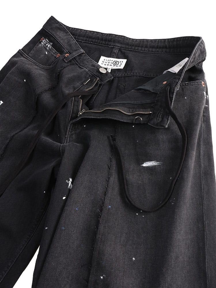 既成概念を壊す、アヴァンギャルドなデニム。エムエムシックス メゾン マルジェラから、アーティスティックな感性が光るワイドジーンズが登場。カジュアルなデニムを、一気にモードへと昇華させた一本です。ゆったりとしたワイドシルエットが、現代的なリラックスムードを演出。最大の特徴は、生地の上に施された大胆で抽象的なペイント加工。履く人に個性を与え、唯一無二の存在感を放ちます。ウエストにはコードとジップフライを併用することで、着こなしの幅と快適なフィット感を両立。象徴的な5ポケットデザインが機能性をサポートします。日常の着こなしを実験的なアートに変える、モードな大人のためのマストバイデニムです。