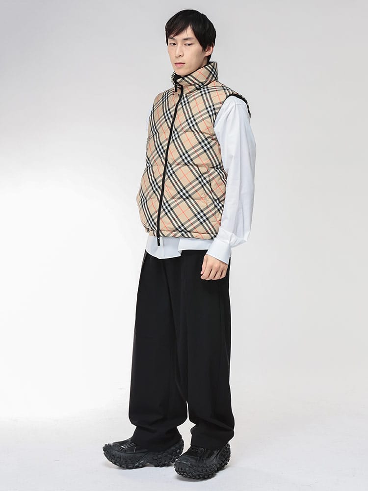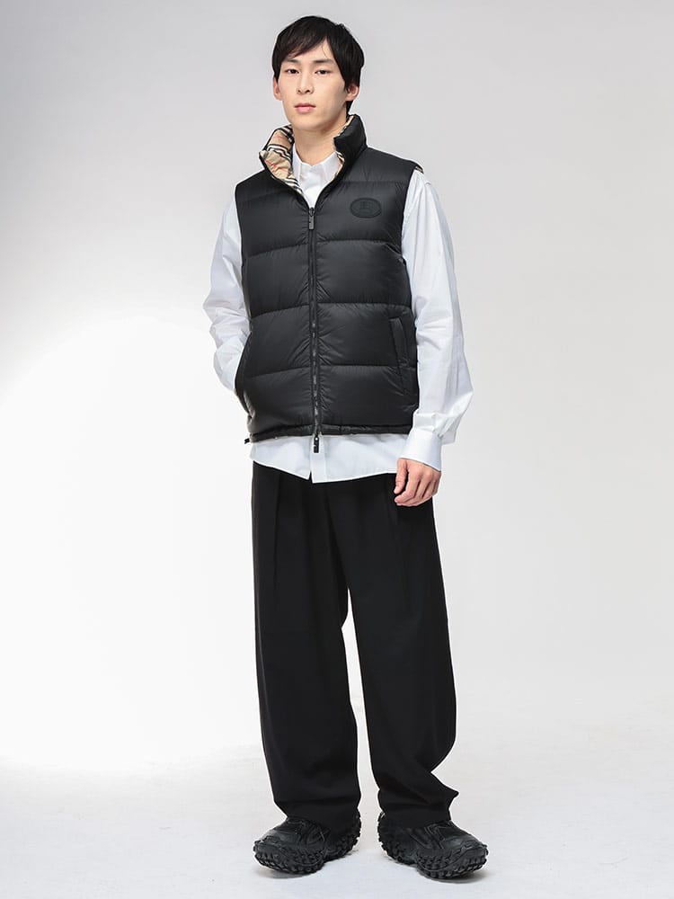 スタイルを二面で楽しむ、リバーシブルの傑作。バーバリーから、ブランドのアイコンを纏うリバーシブル ダウンベストが登場。その日の気分やシーンに合わせて表情を変えられる、極めて洗練された一着です。片面は、クラシカルなハウスチェック柄。ブリティッシュトラッドの風格を漂わせ、装いに確固たる品格を与えます。もう片面は、クリーンな無地。ミニマルなデザインが都会的なムードを演出します。高品質なダウンパディングが体幹をしっかりと温め、寒い季節の着こなしに欠かせない保温性を確保。ダブルジップとポケットも充実しており、機能性も抜群です。ラグジュアリーと実用性を兼ね備えた、秋冬のレイヤリングを格上げするベストです。