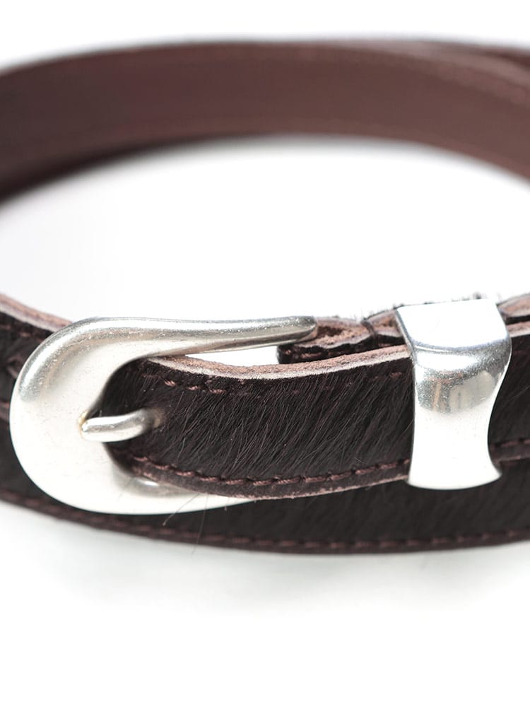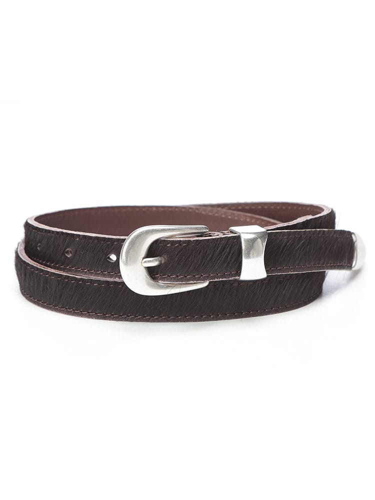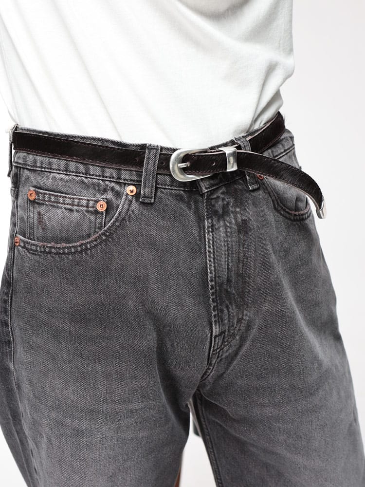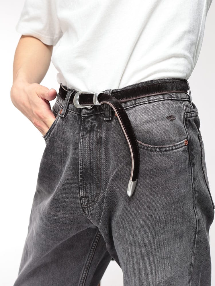 ミニマルな装いに、ワイルドなテクスチャー。スウェーデン発のブランド、OUR LEGACYから、個性の光るテクスチャーを纏ったベルト。上質なカーフヘアーを贅沢に使用することで、シンプルなデザインでありながら、見る角度によって表情を変える野性的で奥行きのあるテクスチャーを生み出しました。ミニマルなバックルとの対比が、アワーレガシーらしい実験的なセンスを強調します。ドレスパンツからデニムまで、いつものボトムスに合わせるだけで、装いを一気にエッジィなムードへと昇華。細部に宿るこだわりが、大人の着こなしを格上げするステートメントアイテムです。