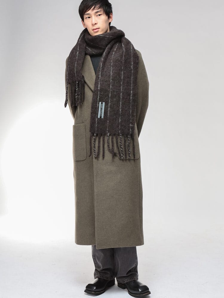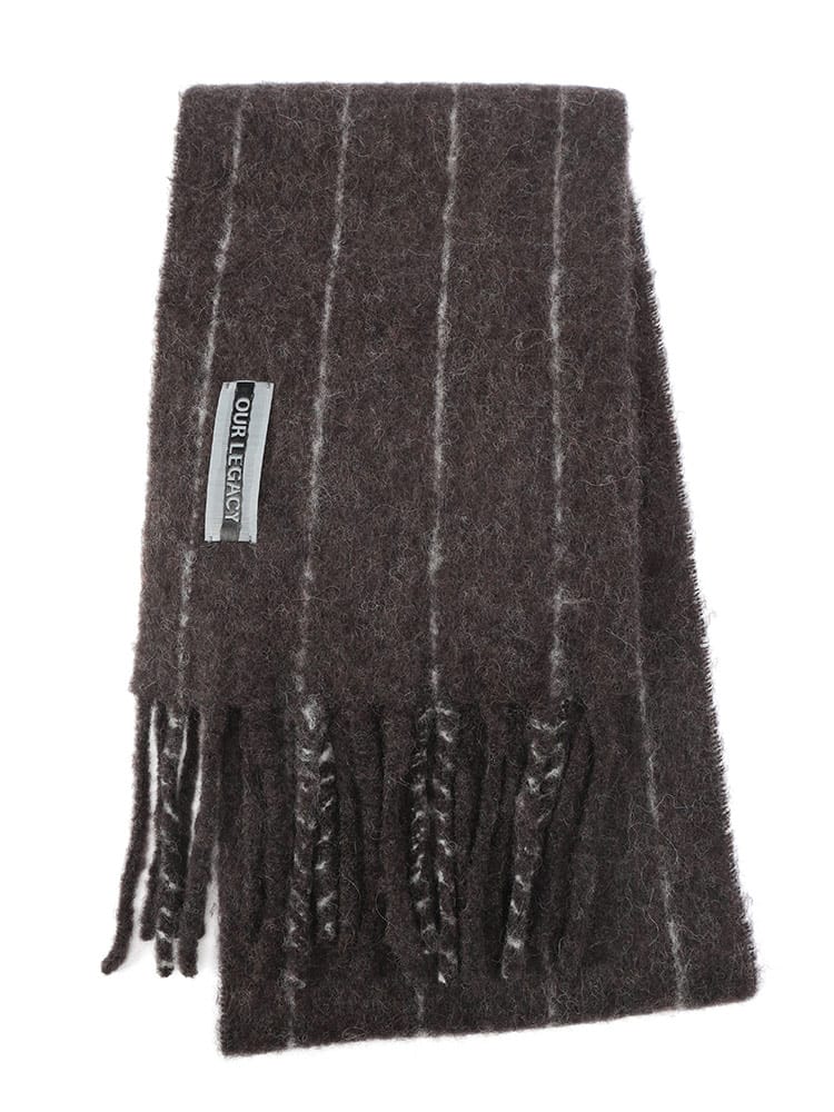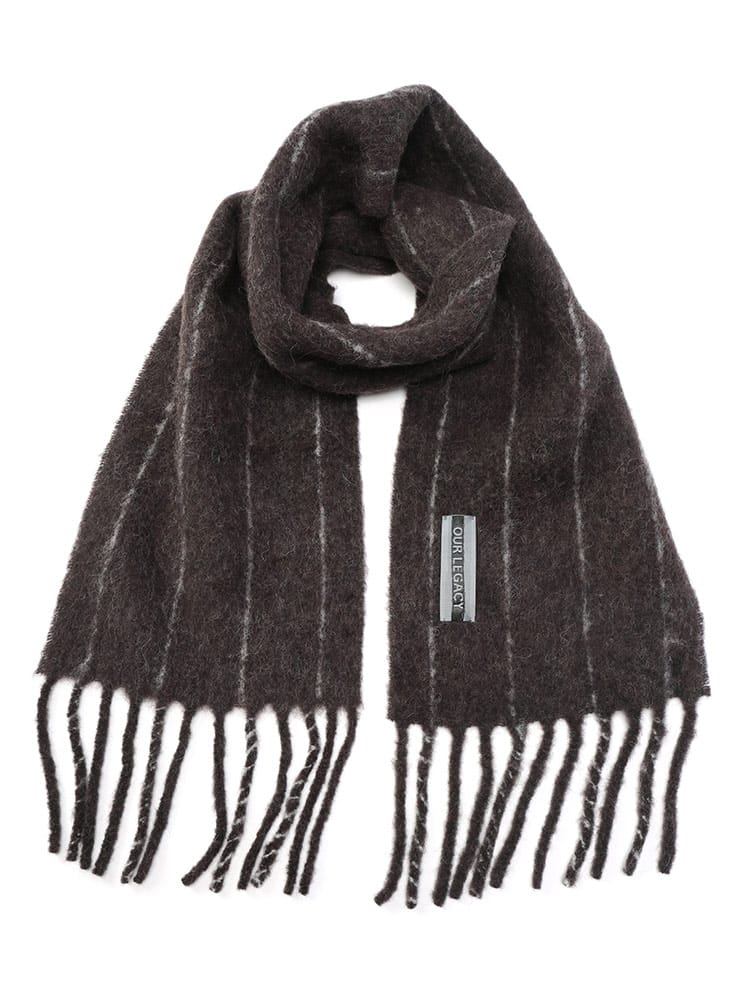 柔らかさと色彩が交差する、モダンな装飾。OUR LEGACYから、秋冬の装いに温かみと遊び心を添えるストライプマフラー。上質なアルパカを贅沢にブレンドした素材は、極上の柔らかな肌触りと、空気を纏うような軽やかな温もりを約束します。絶妙なピッチで配されたマルチストライプが、クラシックなアイテムにモダンな生命感を注入。大判でボリュームがあり、無造作に巻くだけで洗練された表情を演出。フリンジのディテールが抜け感をプラスします。アウターとのコントラストを楽しめる、アワーレガシーらしい実験的なエレガンスが光る一本です。
