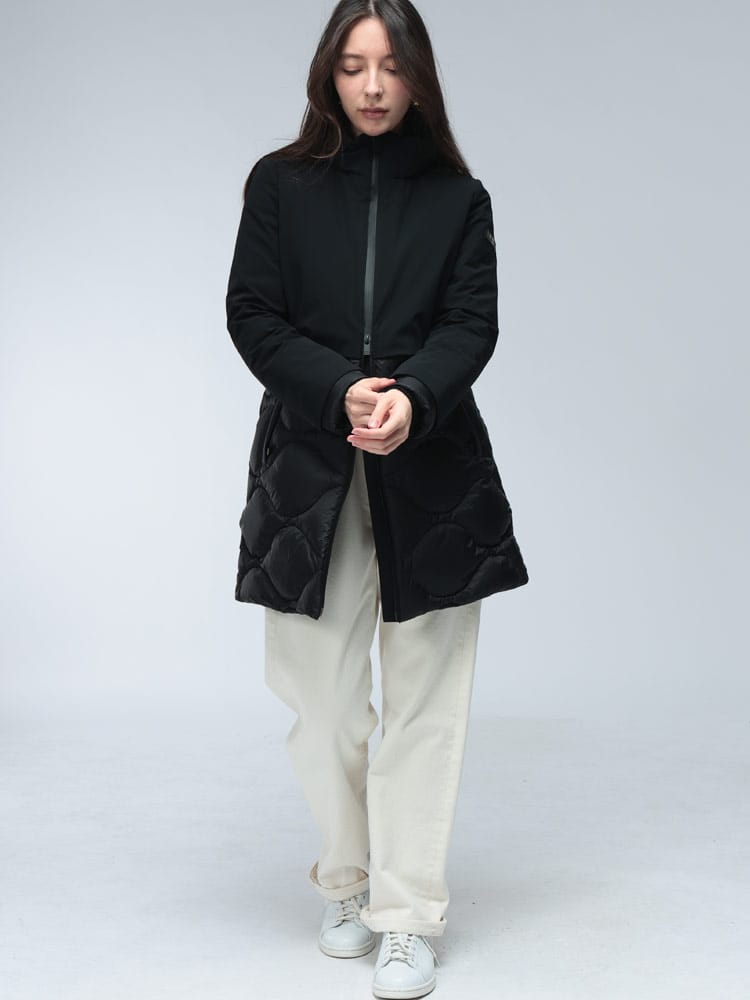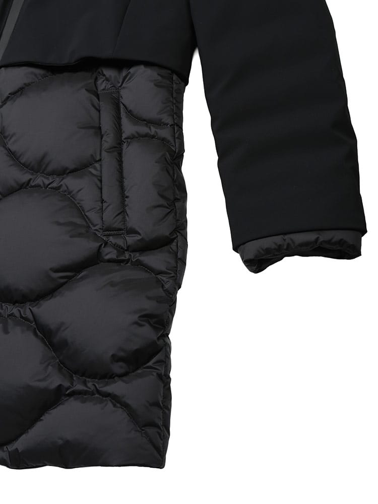 素材 :[表地]ナイロン79% ポリウレタン21% [別布]ナイロン100% [中綿]ダウン90% フェザー10% [裏地]ナイロン100%